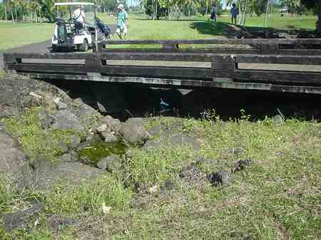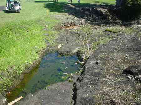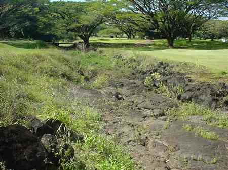 このホールのほかにも、同じようなクリークが横切っているホールが、いくつもありますが、どこも同様に、水が流れていない、岩か溶岩のハザードです。