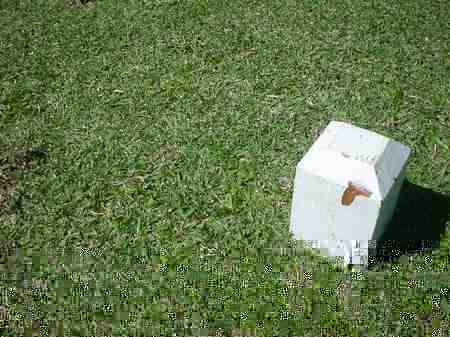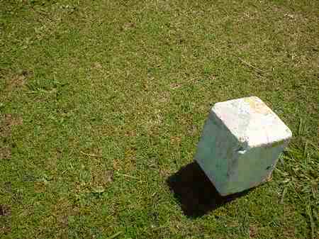 ボール洗い機のスタンドの途中に、ホールナンバーと、距離表示が記載されたプレートがはりついていますが、朽ち果てて、半分欠けてました。