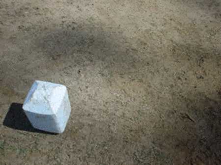 あるホールのティーグランドは、完全な泥のところもあり。→