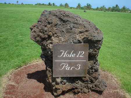 ![]() ←フアラライゴルフクラブの”ホールプレート”。 各ホールのティーグランドには、このような溶岩にプレートが貼り付けてあります。 コースレイアウトや距離の表示はナシ。 ![]() このコースのシグネチャーホールの1つ。 距離は短めのパー3ですが、非常におもしろく、印象に残るホールです! ←”Championship Tee” のティーグランドすぐ前には溶岩があり、”溶岩越え”。 グリーンの手前には、超巨大なバンカーがあります。 そのバンカーの中には、溶岩が点在! グリーンの右には、バンカーがあります。 ![]() なんといっても、おもしろいのは、このホールは、”グリーンの中にバンカーがある” のです!(^^ ![]() 1997年にはじめてラウンドしてますが、グリーンの中にバンカーがあるホールは、RYOが今までラウンドした中で、はじめて!!(^^ それ以降でも、”グリーンの中にバンカーがあるホール”は、まだ、このホールしか経験してません!! 日本のコースでは、”グリーンの中にバンカーがあるホール”が存在するかは未確認。(埼玉県の彩の森カントリークラブにはあるらしいです) ほかには、US・PGAツアーを開催しているコースで、”グリーンの中にバンカーがあるホール” をテレビで見たことがあります。 ![]() グリーンは巨大ですが、グリーンの中にバンカーがあるのは、やっぱりおもしろいです!(^^ せっかく、いいショットをして、1オンしたと思ったら、バンカーに入った!!とか・・・、バンカーをはさんで、ピンの反対にオンしてしまった!!とか・・・ということになったら、おもしろいですよね!?(^^ PGAツアーでは、ボールがバンカーをはさんで、ピンの反対にオンしてたプロは、グリーン上からウェッジでアプローチしてましたが、通常は、パターしか使用できないでしょうから、遠回りにパットすることになるのでしょう!?(^^; ![]() グリーンの中のバンカーは、浅いわけではなく、しっかりしたバンカーです。 今回は、1日目はグリーンの右手前、2日目は、バンカーの←にピンをきってありました! ”Championship Tee” からでも、145ヤードと短めなので、今回、RYOは3ラウンドとも、一度もバンカーに入らずにすみましたが、同伴の友人が入ってしまい、笑ってしまいました!(^^ グリーンが巨大なので、右手前にピンが設定してあれば、比較的やさしいかもしれません。 ![]() もし、ピンポジションが、バンカーの奥や手前、または、すごくバンカーに近いところに設定されてたら、さらに、”スリリング” となることでしょう!!?(^^ 実際に、そんなところにピンを設定することがあるかどうかは、わかりませんが・・・。(^^; ←奥から、ティーグランド方向を見たところ。