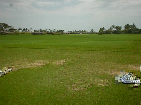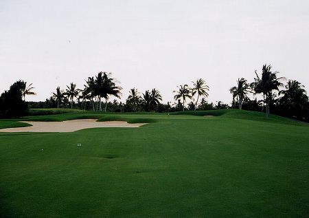 ![]() 右へドッグレッグしているホール。 フェアウェインの両サイドにクロスバンカーがあります。 ![]() ←セカンドショット地点付近、フェアウェイの右サイドから、グリーン方向を見たところ。 右サイドは、ココナッツツリーがあり、ややスタイミーになる可能性があります。 ![]() ←グリーン手前、100ヤード付近から見たところ。 グリーンの左手前には、大きなバンカー。