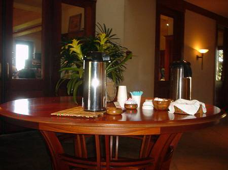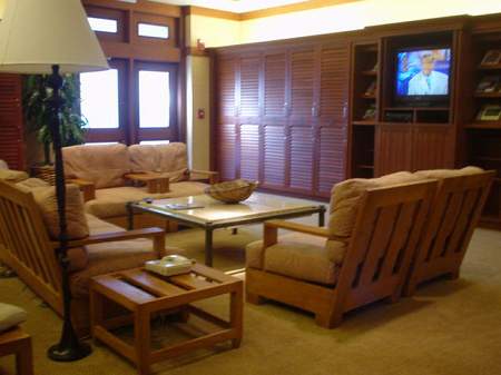 ![]() ![]() このホールも、シグネチャーホールの1つ。 ←ティーグランドは、海の近くにあり、最高の景観です! ![]() ホールは、海から内側に向かっていて、左へドッグレッグしているフィニッシングホール。 ティーグランドの前に、湿地帯のような巨大な池があり、ティーショットは、”池越え” となります。 フェアウェイの左サイドにはバンカー群があり、左ドッグレッグしているため、池を越えると、その奥にすぐにあるバンカーを越えなければなりません。 右サイドが安全ですが、セカンドショットの距離が残ってしまうので、どの方向を狙っていくか、戦略性を求められます。 正面真ん中のバンカーは、ドライバーで、距離的に充分越すことができますが、ひっかけると、バンカーがあり、さらにその左はホール外(ハザード扱いだったかな?)となるので要注意。 ![]() ホールの右サイドは、ずーっと、ホテルが連なっています。 フォーシーンズホテルは、2階建てのコンドミアムのような建物なのです。 ![]() ←セカンドショット地点から見たグリーン。 グリーンの左右のバンカー。 グリーンの奥には、クラブハウスがあり、その2階はレストラン。 そこから、たくさんのギャラリーが見物していて、ナイスショット、ナイスパットすると、拍手喝采してくれます!(^^ RYOは、3ラウンド中で1回、バーディーパットを決め、拍手してもらい、最高に気分のいいホールアウトを味わったのでした!!(^^ 5年前と変わったところは、コース内から見る景観です。 5年前は、コース内にコンドミニアムなどの棟は、ほとんど建っていなかったのですが、現在はかなりのハウスが造られていました。 それにしても、今回は、ほんとに空いていました! リゾートオーナーかゲストしかプレーできないとはいっても、ほんとにガラガラで、貸切みたいでした!(^^ 最高に素晴らしいコースなのですが、最大の難点は、完全なプライベートリゾートであるということ。 プレーできるのは、リゾートオーナー(フアラライリゾート内のハウスのオーナー)か、リゾートゲストのみ。 リゾートゲストは、フォーシーズンズリゾート・フアラライの宿泊者のことで、オーナーでない一般観光客の場合、フォーシーズンズリゾート・フアラライに宿泊しないと、プレーできないことになります!(^^; しかしながら、このフォーシーズンズリゾート・フアラライは、宿泊料金が非常に高額です。(^^; 今回、RYOが宿泊したのは、一番安い部屋(ゴルフオーシャンビュー・ツインルーム)。 2002年の4月という時期で、1泊1部屋$500 。 そのほかにサービス料が、1泊1部屋、約$30 かかりました。 なんと、一人あたり1泊 $265 。(これには朝食もついていません!(^^;) このコースでプレーするために、1泊だけしましたが、一般庶民ではそう簡単に宿泊できる料金でないのが、最大のネックといえるでしょう!(^^; さらに、ゲストのプレーフィーは、$165。TAX込みで $172 くらい。 ノンゲストはプレーできないので、ノンゲストの料金設定はないのですが・・・。 リプレイも $75 (TAX込で$89くらい) もしました!(^^; 5年前は、たしか、1ラウンド$110、リプレイ$30くらいだったのに・・・。かなり値上げしたといえます!(^^; ![]() フアラライゴルフクラブでは、18ホールを増設するらしく、コースのまわりは工事中のところが見えました。 6番ホールの右のコース増設の様子。↓→ ![]() 2002年末には完成するらしいです。 しかし、新しくできるコース(18ホール)は、完全プライベートコースとなり、リゾートゲストでもプレーできず、リゾートオーナーとオーナーのゲストのみが、プレー可能になるとのことでした!(^^; となると、一般観光客がプレーするのは、ほとんど不可能ということに・・・!(^^; 物件を購入してオーナーになるのは、RYOでは、ほとんど不可能なので、オーナーの知人をつくり、連れてきてもらうしかないのかな?? どなたか、オーナーになって、是非とも、RYOを連れてきてくださーーーーーーーい!(^^ クラブハウス:特A ![]() 非常にきれいなクラブハウスです。 2階建てで、1階にプロショップやロッカールーム。 2階には、レストランがあります。 ハワイのゴルフコースのクラブハウスの中では、トップクラスといってもいいでしょう!(^^ ![]() ←クラブハウス内には、このようなコーヒーサービスしているコーナーがあります。 もちろん、無料です!(^^ プロショップ:特A 右上のクラブハウスの写真のトンネルみたいに見えるところが、反対側へと抜ける通路になっています。通路側にあるプロショップの入り口。→ ![]() ←スターターカウンター側にあるプロショップ入り口。 ![]() ←プロショップ内のキャッシャー。 チェックインは、ここで行います。 ![]() プロショップ内は、非常に落ち着いた雰囲気で、とてもきれいです。→ 室内は広く、床は全面カーペット。 ゴージャスな感じがします。 オリジナルグッズなどの品揃えも豊富で、申し分ありません!(^^ ロッカールーム:特A ![]() 床はカーペット