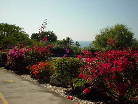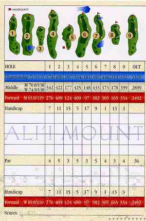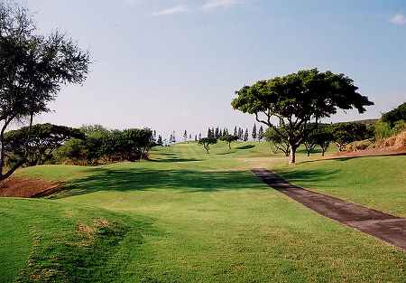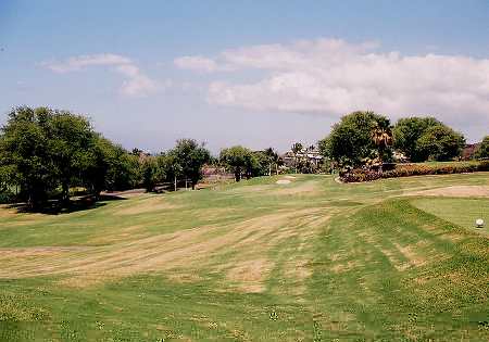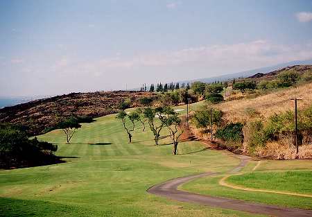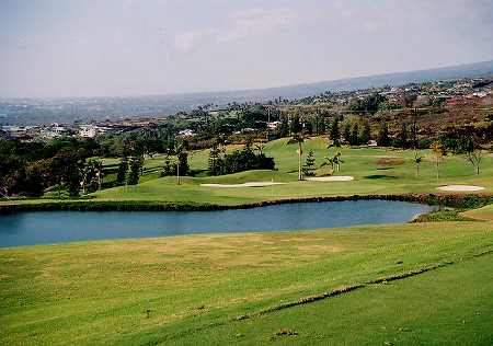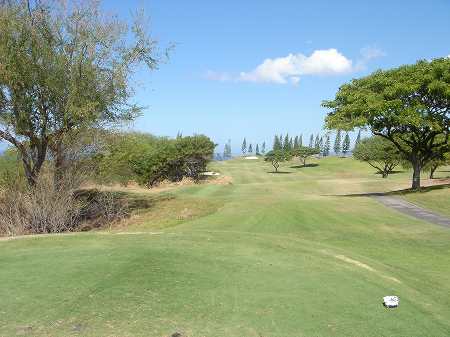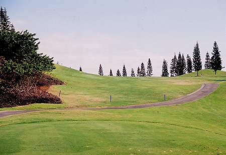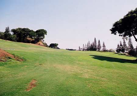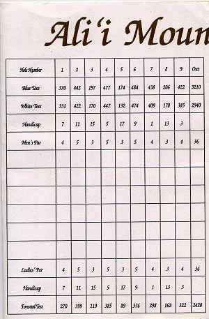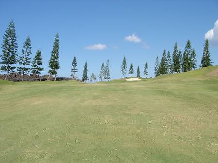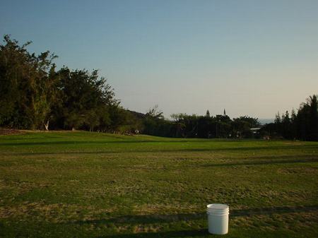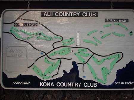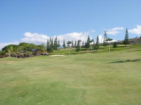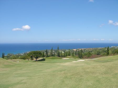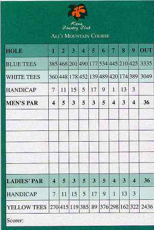 | 2006年2月13日ラウンド(2回目)。 この日は、オーシャンコースでプレーしようと思ってきたのです。 ゴルフコースには7時すぎに到着。 今回は3名でのプレー予定で、それほど混んでないだろうと予想し予約はしてなかったのですが、なんと、オーシャンコースはいっぱいで、プレーできなかったのでした!(^^; マウナラニのような”スタンバイ(待機していてキャンセル等がでたら入れてくれる制度)”という気の利いたことはしてくれませんでした!(^^; しかたなく、マウンテンコースをラウンド。 こちらは空いています! オーシャンコースとマウンテンコースのどちらか1ラウンドしかプレーしないとしたら、ほとんどの人がオーションコースをセレクトするのででしょう! マウンテンコースは、数ホールアップダウンが激しい、しょうもないホールがあるものの、ほかはコースからの景色がよいので、やはりまあまあといえます!(^^ ただ、コースコンディションは、前回プレーした時よりは悪かったです。 このアリイ・マウンテンコースは、オーシャンコースよりも山側レイアウトされていて、全ホールが山あい造られています。 そのため、段々畑状になっているホールや、アップダウンが激しいトリッキーなホールがほとんど。 ハワイでは珍しいレイアウトといえるでしょう! しかし日本のゴルフ場では、かなりの割合のコースが山あいに造られているし、山岳コースも多いことを考えると、日本人プレーヤーにとっては、このようなレイアウトは、さほど驚くこともないかもしれませんが・・・!?(^^; このコースの一番のいいところは、なにしろコースからの景観がいいこと! 山あいにレイアウトされていまうので、ほとんどのホールから海が非常によく見えるのです!(^^ 海がすぐ近くに見えるわけではないのですが、非常に眺めがよい、ハワイのゴルフ場の中でも屈指の景色の良いコースといえます。 ![]() フロントナインは、パー5とパー3が3ホールずつあるパー36の構成で、やや変則。 バンカーはそこそこありますが、小さめで浅めのものが多く、ほとんどのホールで手前の花道が広くとられているので、ほとんどプレッシャーはかからず、あまり効いていないような感じです。 ■コース設計 ロビン・ネルソン ■ホール数、パー 18ホール Par 72 OUT Par 36、IN Par 36 ■ティーマーク、距離、コースレート、スロープレート ティーマークは3ヶ所。 2003年時のスコアカードと比べると、以前はブルー、ホワイト、イエローというティーだったのですが、現在はチャンピオンシップ、ミドル、フォワードというティーに名称が変わっています。また、各ホールの距離やレートも少しずつ異なっていました。