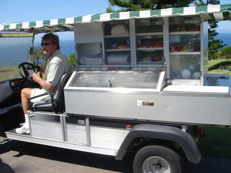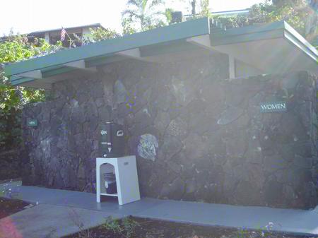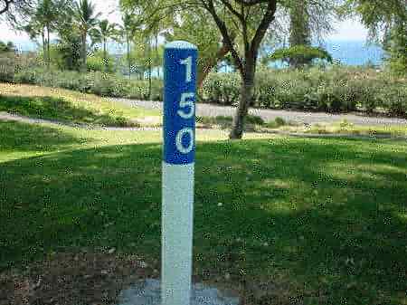 ■距離表示 ◆アクセスやクラブハウス ■スナックショップ クラブハウスやコース内にスナックショップはありません! かわりにコース内を巡回するスナックカーがあります。 ■スナックカー あり。 ![]() コークが$3でした! ちょっと高っ!(^^; ■レストルーム ![]() コース内にあるレストルーム。→ 石垣でできた建物です。 きれいとはいえませんが、まあこんなものでしょう! ■スターターカウンター あり。 スターターにチェックイン時にもらったレシートのような紙をわたしすと、カートのキーをわたしてくれます。 ■乗用カート 2人乗りガソリンカート。 走行時の音がうるさいです! ディボットボトルあり。 クーラーボックスあり。 氷入り。ミネラルウォーター2本付。 ■ボール洗い機 あり。 ![]() たしか、各ホール?のティーグランド付近にありました。 ■ティーマーク ![]() 色が塗ってある石がティーマークです。→ ■ピンフラッグ 未確認。 ■ホールプレート ![]() 石垣の壁みたいなヤツに、木製のホールプレートが貼り付けてあります。 記載されているレイアウト図は、かなりアバウトなので、ホール形状は似ていないものも・・・。 また、各ホールの距離表示は、現在の距離とは異なっています。 ■日本語スタッフ いません! ■バッグタグ あり。 ![]() スターターに言えば、無料でくれます。 ■プラスティックボールマーカー あり。 スターターカウンターのところに置いてあります。 無料。 ![]()