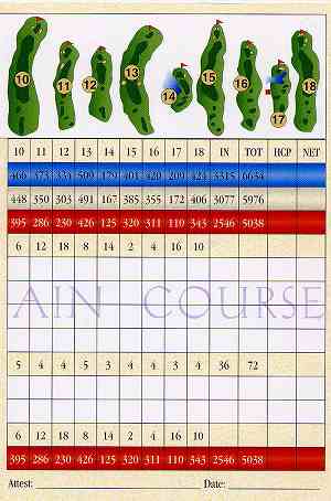 ■スコアカード 1999年時のスコアカードです。 オーシャーンコースのスコアカードの裏面にあったので、参考に掲載しました。 ボール紙のような白い紙を使用していて、コース名などの一部だけ金色でしたが、あとは黒のみ。 非常に地味なスコアカードでした!