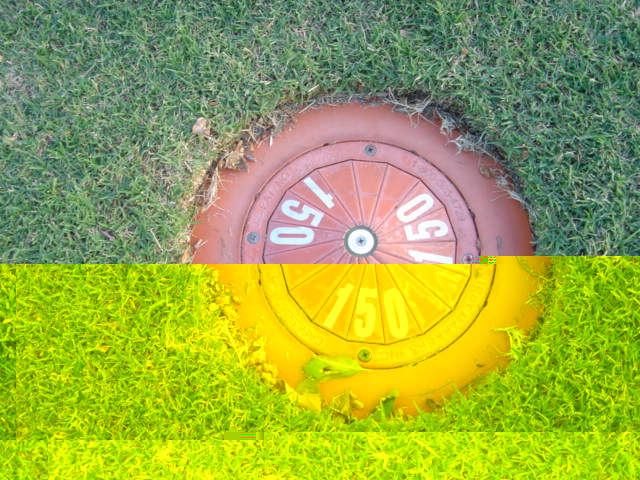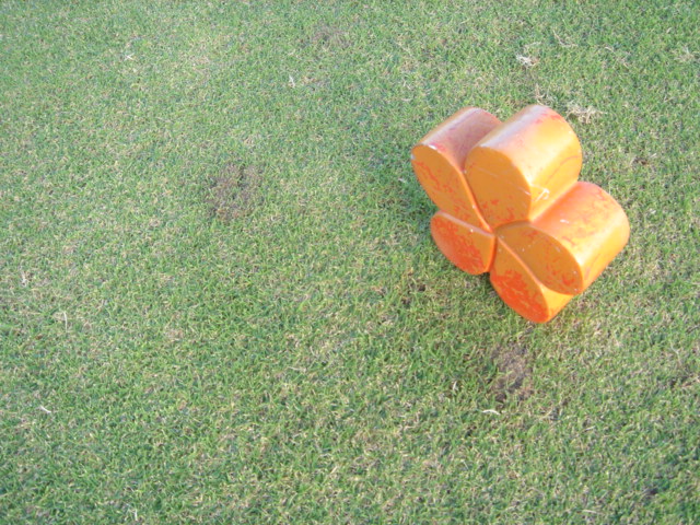 ![]() ■アクセス コナ空港から、QUEEN KAAHUMANU HWY.(Route19)を、コハラコースト方面へ向かい、ワイコロア、マウナラニリゾートを過ぎ、しばらく走行すると、道路沿い左側にコース入り口のゲートがあるので、そこを左折。 道なりに奥まで走行すると、クラブハウスがあります。 コース入り口のゲート→ アゼリアの花が、いっぱい咲いていました! ■クラブハウス ![]() クラブハウスと呼べるような建物ではありません。 木造1階建ての平屋で、プロショップとレストランと管理棟がいっしょになった、古い建物です。 パーキング側から見たところ。→ ![]() 横長になっています。 ![]() プロショップ入り口→ 扉はありません。 ■プロショップ ![]() プロショップは、少し薄暗いです。 写真の右に見えるのが、プロショップのキャッシャー→ チェックインなど、ここで行います。 ![]() マウナケア・オリジナルロゴマーク入りのグッズの品数は豊富。 ![]() キャップ、サンバイザー、ポロシャツ、クリップマーカーなどなど、いろんなグッズがあります。 ■レストラン ![]() レストランも、かなり薄暗いですが、まあ、きれいにはなっています。 食事はしてないので、メニューの内容は不明。 ![]() 朝は、マウナラニと同じような、パンとコーヒーのサービス(無料)がありました!(^^ ![]() おそらく、プリンスホテルから運んできてると思われます。 早めにきて、朝食をとるのがおすすめ。 ただ、早い者勝ちなので、コーヒーやパンが、なくなってることもあります。 ![]() レストランのテラス席→ ゴルフコース側ではなく、パーキング側にあるので、景観はよくありません。 ただ、日陰になっているので、涼しいです。 ■スナックショップ あり。10番ホールのティーグランドの手前付近にあります。 フロントナインを終了して、バックナインをプレーする前に購入できます。また、クラブハウスから近いので、スタート前にも購入可能。 ■ロッカールーム あり。プロショップをコース側へ出て、左側のレストルームに入り、奥にあります。 室内は薄暗く、床は固いタイプの安っぽいカーペット。 汚れてはいませんが、古いので、あまりきれいではありません。 ■ロッカー あり。 上下分割タイプのロッカー。 ただ、メンバー専用のロッカーなので、ビジターはキーを貸してくれません。 ■洗面スペース 壁、床はタイル。![]() いろいろ備品は用意してありました。→ それぞれが、何なのかは、よく見ませんでしたが・・・。(^^; ■シャワー ![]() あり。 4つあります。 ![]() バスタオルも完備。→ ![]() かなり古い体重計。→ ■レストルーム 床、壁はタイル。 汚くはないですが、古いので、あまりきれいではありません。 ■スターターカウンター ![]() プロシショップをコース側にでて右側にあります。 ■カート 2人乗り乗用カート。![]() カート前方 ディボットボトル装備。 乾いたタオル装備(オレンジ色のタオル)。 ティーペグ(木製)あり。 ![]() カート後方 クーラーボックスあり。 中には、氷とミネラルウォーターのサービス(2本だったかな?) カゴ、ボール、アイアン洗い機装備。 ■ドライビングレンジ ![]() 9打席。250ヤードくらい。 無料。 クラブハウスをコース側にでて、すぐ前にあります。 アプローチ、バンカー練習レンジは、確認忘れました!(^^; ![]() フラットで、幅もそこそこあり、打ちやすいです。 天然芝から打てます。 ただ、芝はけっこうハゲていました。 ティーペグは、そこらへんいたくさん散らばっています。 ボールは、黄色い硬いタイプの練習球(1ピースボールかな?)を使用。 ■パッティングレンジ 芝の手入れは、まずまず。 ![]() ■その他設備 ![]() シューズみがき機→ ![]() シューズのスパイクについた泥を落とすブラシ。→ ![]() 各ホールのティーボックス前にあるプレート。 ホールの距離と、簡単なレイアウトが掲載。 また、その近くに、ボール洗い機とタオル、ゴミ箱があります。 ■距離表示 ![]() プレート フェアウェイのセンターに、75、100、150、200ヤードのプレート。 グリーンセンターまでの表示。 ![]() スプリンクラー フェアウェイのところどころにあるスプリンクラーにも表示あり。 グリーンフロントエッジまでの表示と、グリーンセンターまでの表示。 F・・・フロントエッジまで。C・・・グリーンセンターまで。 ピンポジション スコアカードに3分割(1,2,3)の図が掲載されており、その日使用のピンピジション番号が、掲示されています。 たしか、カート前方上部か、1番ホールティーグランド近くに、番号が掲示されていたと思います。(忘れました・・・(^^;) この日は、「TODAY NO.2 」と表示されていました。 ■ピンフラッグ ![]() 長さは、普通。 35インチパター×2+グリップ。 ■スコアカード ![]() 詳細は、こちら 。 ■ヤーデージブック ![]() あり。 有料:$5。 プロショップで販売してます。 ハワイプリンスGCなどと同様の、イラストタイプ。 スケッチブックタイプの、めくりやすいようになっています。 ヤーデ