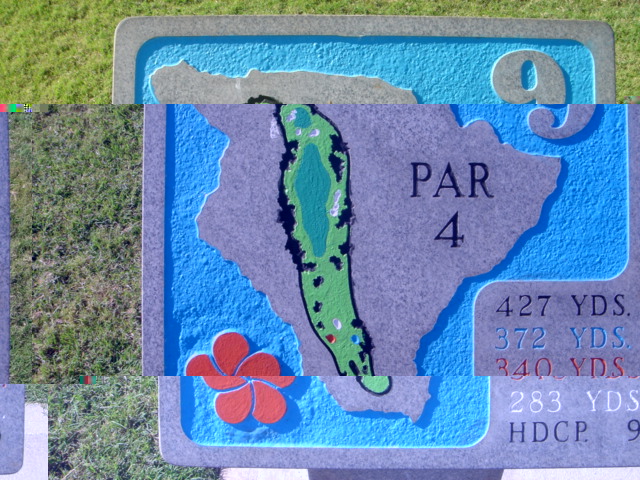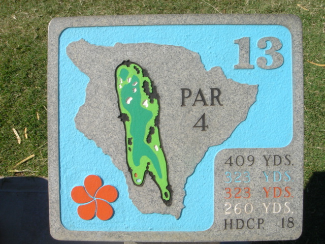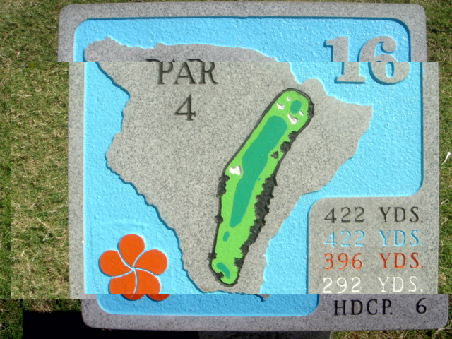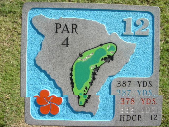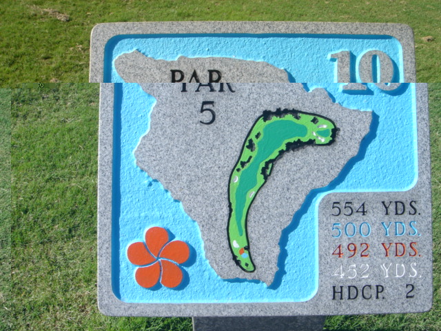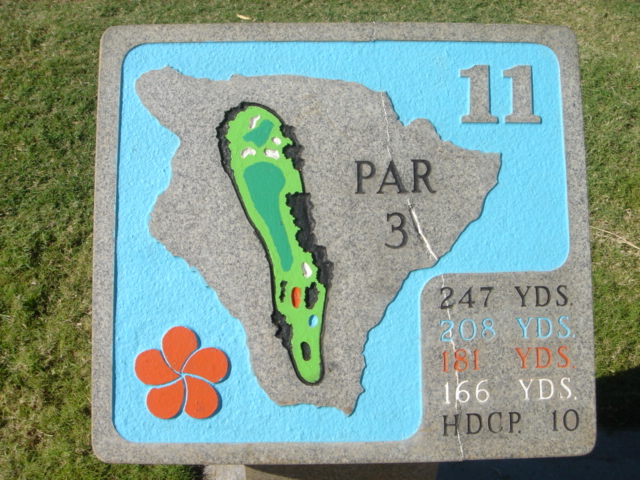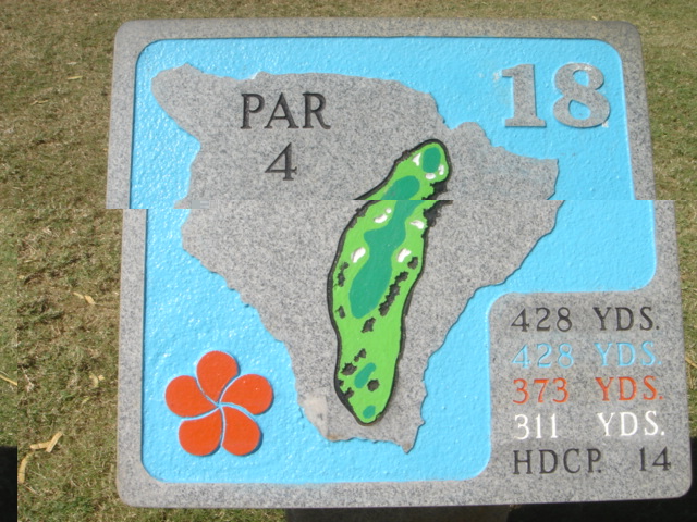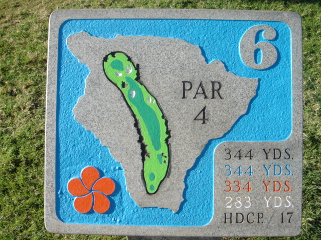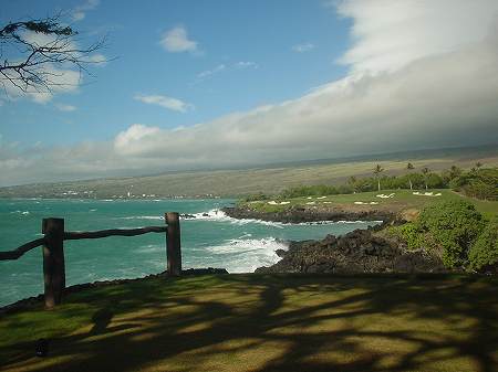 1999年11月30日ラウンド(2回目) 前回のラウンド時は、今よりかなりゴルフがヘタだったこともあり、あまりよい印象がなかったので、今回(2度目)は、感じ方がかなり違うかと思って期待して行きました。 しかし、やはり、あまりRYOの好みではないコースでした。(^^; ![]() コースレイアウトは、ほとんどのホールがティーグランドから打ち下ろしで、グリーンへのショットが打ち上げになるホールが多い!!という印象です。 また、ドッグレッグホールもけっこう多いといえます。 各ホールは、樹木にセパレートされているので、マウナラニのように”360度パノラマ”というような景観は味わえません。 2番ホール。→ 朝一のティータイムだったので、まだ薄暗い!(^^; レイアウトから見れば、日本の丘陵コースにもよくあるような形状、景観であることが、RYOが今ひとつだと思う理由です。 ![]() フェアウェイのコンディションは、特に良いというほどではなく、芝が薄いところなどの今ひとつのエリアも混在していて、普通といったところ。 ハプナの方がまだ、良かったです。 ←6番ホール。 距離が短めのパー4。 やや打ち下ろしで、少し左へドッグレッグしてます。 遠くに海が見えます。 ![]() このコースには、世界でも有名な”海越えホール”があります。 ←3番ホールです。 ブラックティー(チャンピオン):210ヤード、ブルーティー(バック):200ヤード、オレンジ(レギュラー):180ヤード、ホワイト(フロント):140ヤード。 海越えホールの景観としては、マウナラニ・サウスコース15番の方が断然美しいですが、海越えホールは、最高に気持ちがいいです!(^^ オレンジティー(MENSレギュラー)からは、海越えになりますが、迫力はブラックほどはありませんので、ブラックティー(210y)からの挑戦がおすすめです。 ![]() 今回、RYOは、このホールだけブラックティーから打ち、2アイアンで1オンに成功!(^^ 3番ホールグリーン。→ 他のホールは、ボロボロだっただけに、このホールでパーをとれ、大満足でした!(^^ ![]() ←18番ホール。 ティーグランドから海を見下ろせる、フィニッシングホール。 打ち下ろしのパー4です。 右へドッグレッグしていて、けっこうトリッキー。 グリーンは固く、芝の状態も普通といったところ。 ミドルホールではセカンドショット地点、ロングホールではサードショット地点からは打ち上げとなるホールがほとんどで、砲台形グリーンのため、この固いグリーンでは、ナイスショットを打っても、なかなか止まってくれません。 砲台形グリーンを狙うショットは、表示距離よりも20ヤードくらいは長く見る必要があります。 そしてグリーン奥にこぼすと、難しいアプローチが残りますので、なかなかスコアがまとまりません! 非常に難しいコースといえるでしょう。 コースコンディション フェアウェイ:C グリーン:C ティーグランド:C コースレイアウト:C ロケーション:B 海越えがなければC ![]() クラブハウス 新しくはありません。 プロショップの中は、ちょっと薄暗いです。品揃えはソコソコ。 ヤーデ−ジブック あり。有料。$2.5 (以前は無料だった気がしますが・・) バッグタグ 何も言わなくてもつけてくれました! スナックショップ あり。 シャワールーム なし。