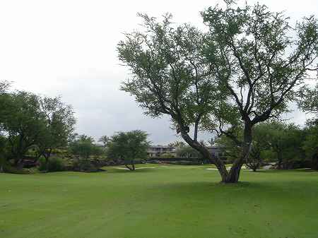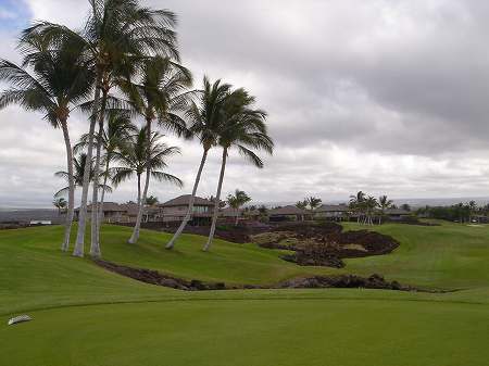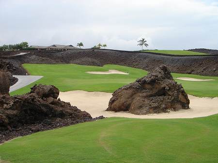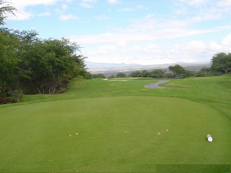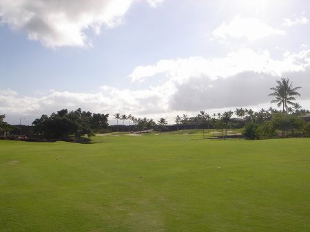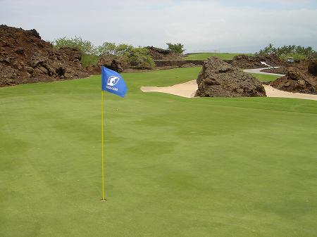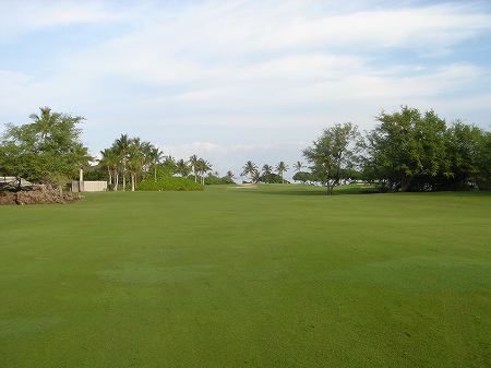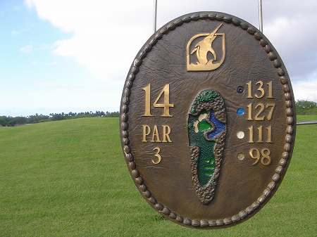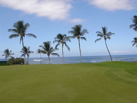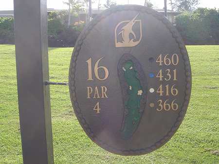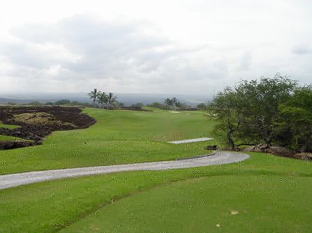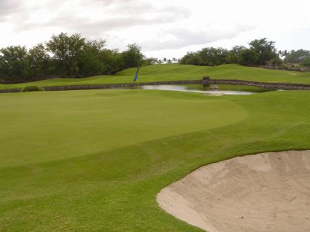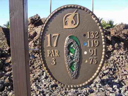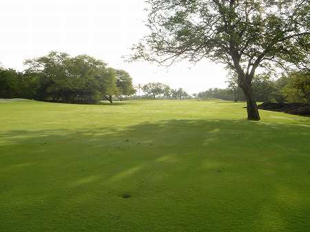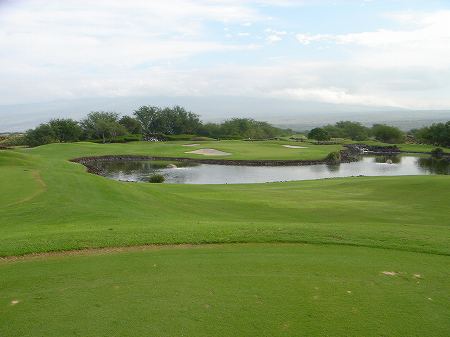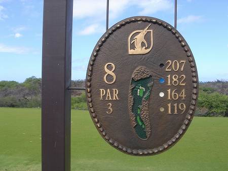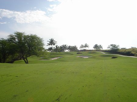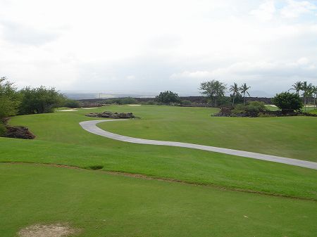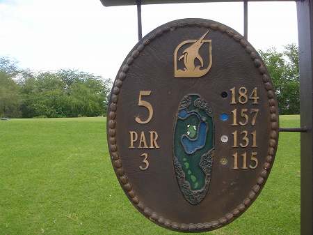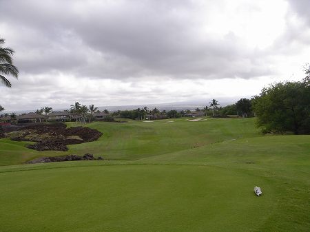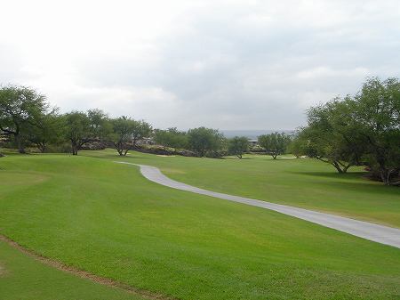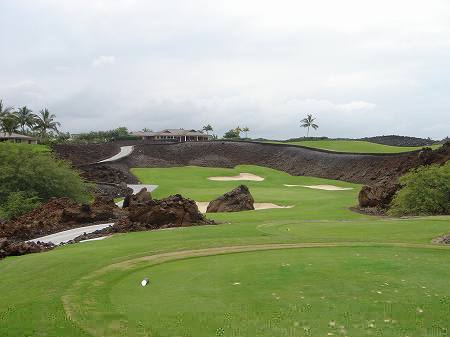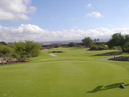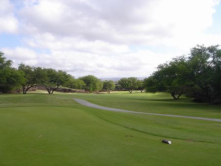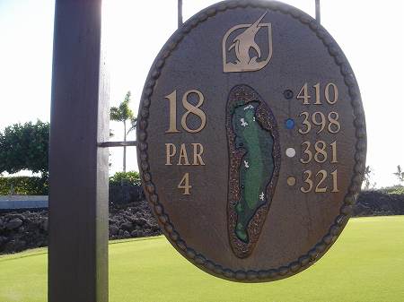 | 1999年11月29日、12月1日、3日にラウンド。(今回4ラウンドしました) サウスコースよりも主に内陸側レイアウトされていて、サウスコースとは、まったく趣が違います。 樹木が多く、林間コースのような雰囲気です。 コース内には、たくさんの小鳥や小動物(いたち?みたいな動物)がいます。 2年前にラウンドした時、15番ホールに野生のヤギがいましたが、季節によるのか、今回は1度もお目にかかりませんでした! とはいうものの、ラバデザートコースの雰囲気があるホール(完全に溶岩に囲まれているホール)も、数ホールあります。 シグネチャーホールの17番ショートホールは、そのひとつで、グリーンのまわりが溶岩の崖にとりかこまれていて、グリーン手前のバンカーには、巨大な溶岩がそびえたっています。しかし、ミドルティー(MENSレギュラー6086y)からは、スコアカード表記91y(実際には、120yのところにティーがきってありました!)ですので、難しくはありません。 しかし、ティーグランドから見ても、グリーン奥の崖の上(次のホールのティーグランドが崖の上にある)から見ても、絵になるホールです!(^^ コンディションは、フェアウェイ、グリーン、ティーグランドとも、サウスコースよりは、少し落ちます。 グリーン、フェアウェイの芝が薄い個所、が少しありました。とはいっても、悪いわけではありません。 マウナケア、ハプナよりは、全然いい状態でした!(^^ コンディション:B 全体的にはAをつけてもでもいいのですが、サウスよりも少し落ちるので、Aに近いBとしました。 フェアウェイ:A グリーン:B ティーグランド:A ロケーション:A サウスほどの素晴らしさはありませんが、海に近いホールもありますし、コース内のコンドミアムの景観もきれいです。 レイアウト:A 総合評価:A |