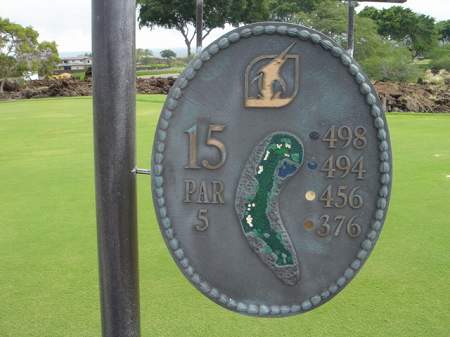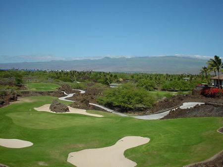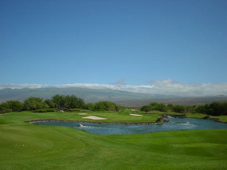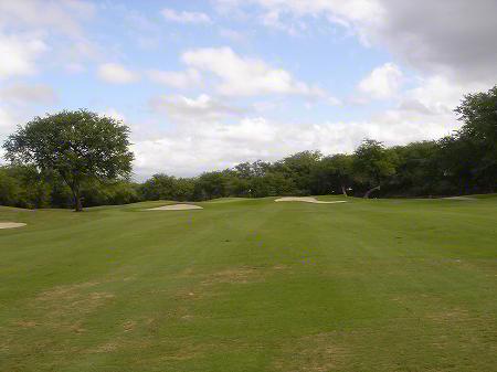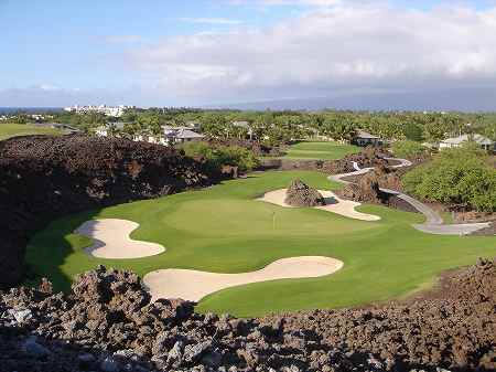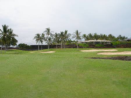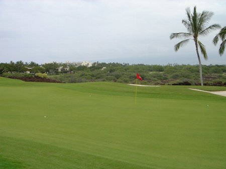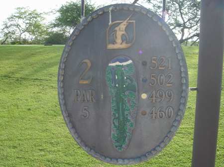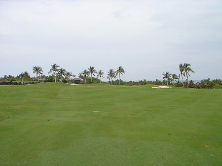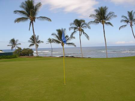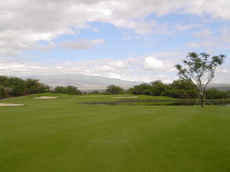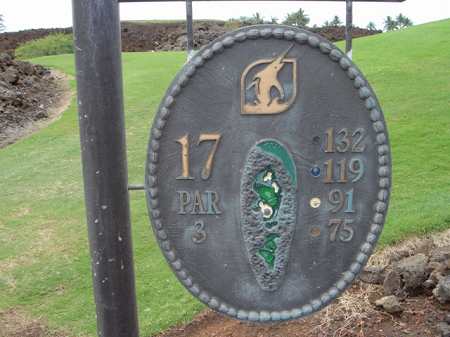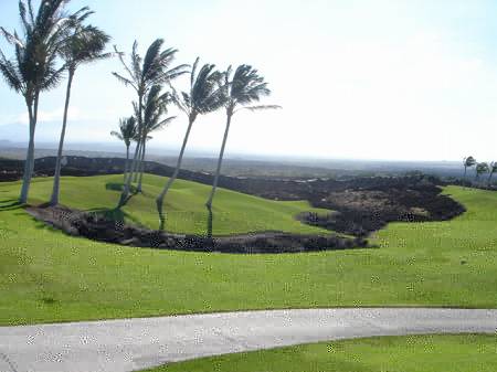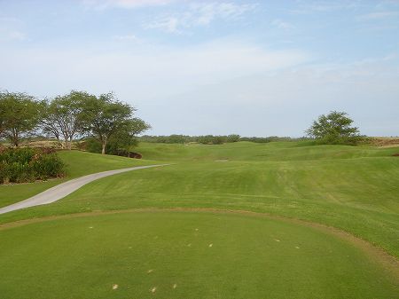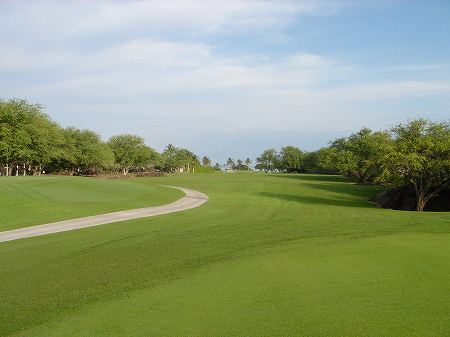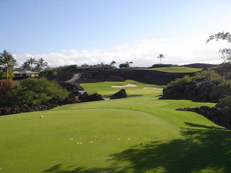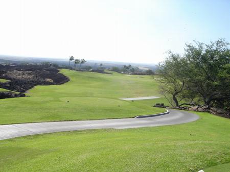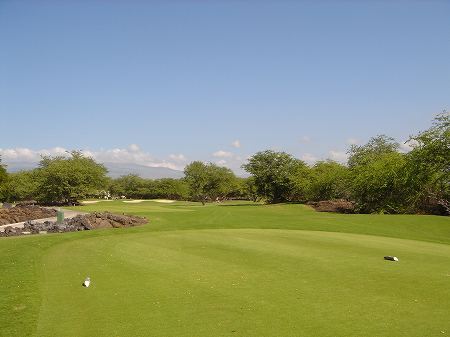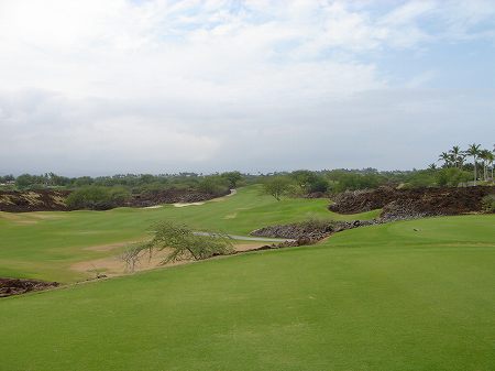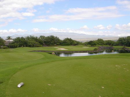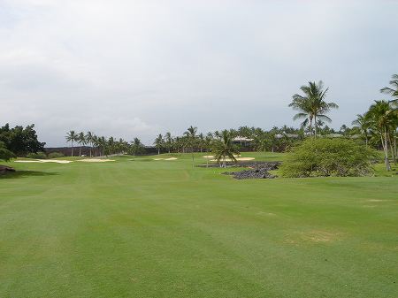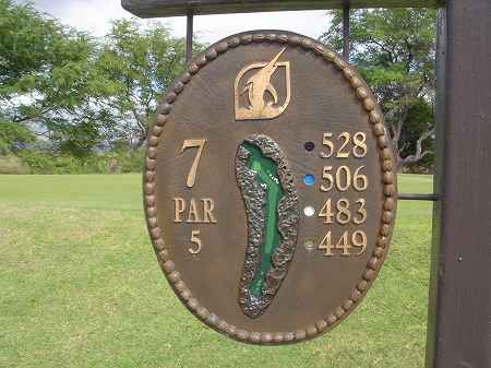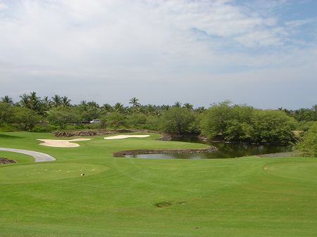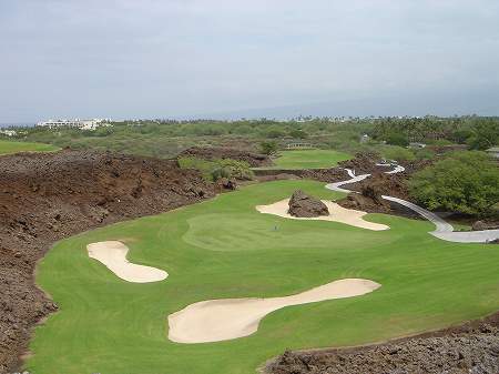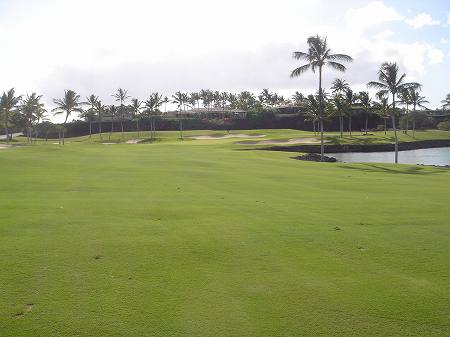 | 1999年11月29日、12月1日、3日にラウンド。(今回4ラウンドしました) サウスコースよりも主に内陸側レイアウトされていて、サウスコースとは、まったく趣が違います。 樹木が多く、林間コースのような雰囲気です。 コース内には、たくさんの小鳥や小動物(いたち?みたいな動物)がいます。 2年前にラウンドした時、15番ホールに野生のヤギがいましたが、季節によるのか、今回は1度もお目にかかりませんでした! とはいうものの、ラバデザートコースの雰囲気があるホール(完全に溶岩に囲まれているホール)も、数ホールあります。 シグネチャーホールの17番ショートホールは、そのひとつで、グリーンのまわりが溶岩の崖にとりかこまれていて、グリーン手前のバンカーには、巨大な溶岩がそびえたっています。しかし、ミドルティー(MENSレギュラー6086y)からは、スコアカード表記91y(実際には、120yのところにティーがきってありました!)ですので、難しくはありません。 しかし、ティーグランドから見ても、グリーン奥の崖の上(次のホールのティーグランドが崖の上にある)から見ても、絵になるホールです!(^^ コンディションは、フェアウェイ、グリーン、ティーグランドとも、サウスコースよりは、少し落ちます。 グリーン、フェアウェイの芝が薄い個所、が少しありました。とはいっても、悪いわけではありません。 マウナケア、ハプナよりは、全然いい状態でした!(^^ コンディション:B 全体的にはAをつけてもでもいいのですが、サウスよりも少し落ちるので、Aに近いBとしました。 フェアウェイ:A グリーン:B ティーグランド:A ロケーション:A サウスほどの素晴らしさはありませんが、海に近いホールもありますし、コース内のコンドミアムの景観もきれいです。 レイアウト:A 総合評価:A |