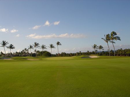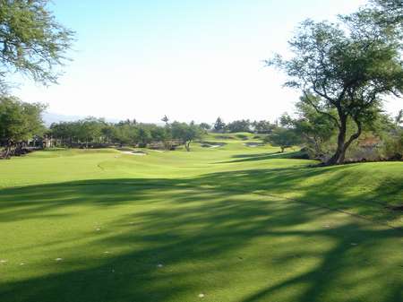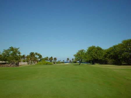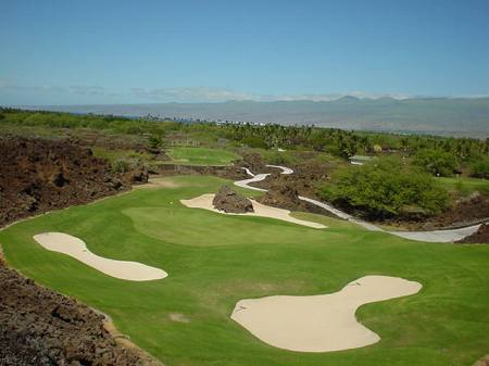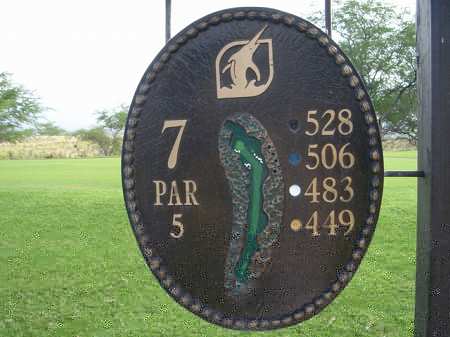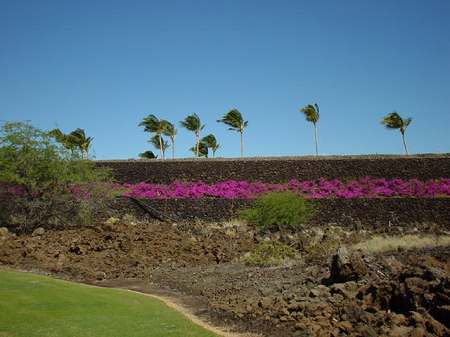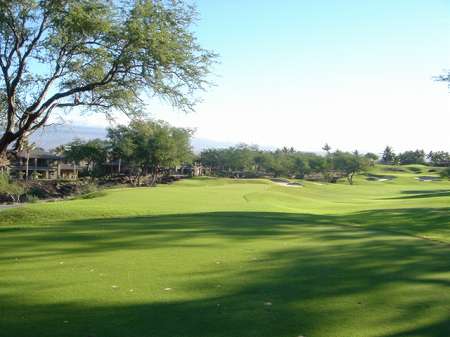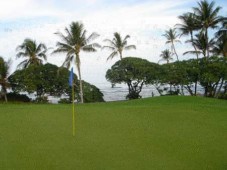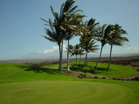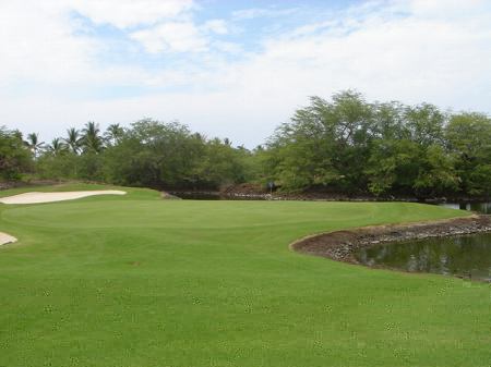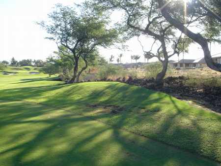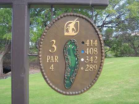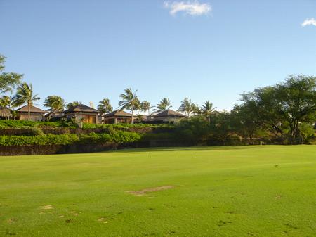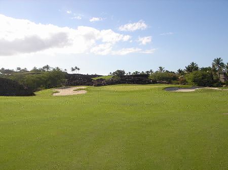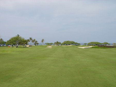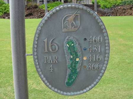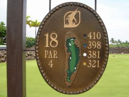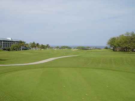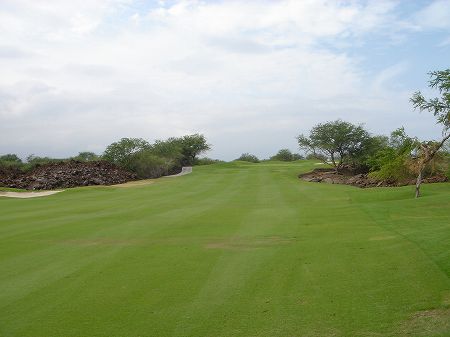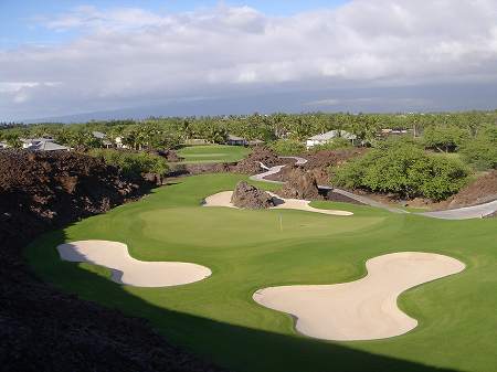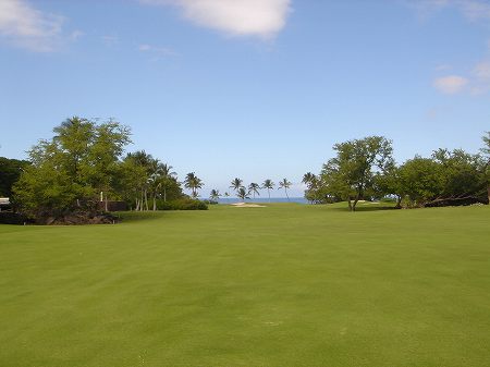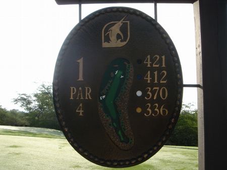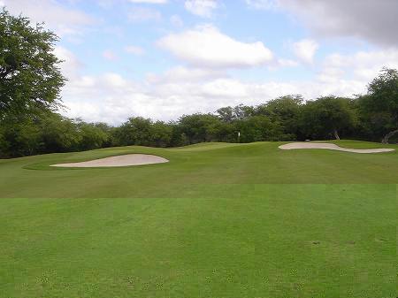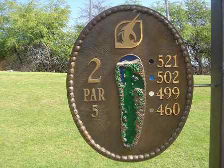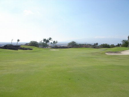 | 1999年11月29日、12月1日、3日にラウンド。(今回4ラウンドしました) サウスコースよりも主に内陸側レイアウトされていて、サウスコースとは、まったく趣が違います。 樹木が多く、林間コースのような雰囲気です。 コース内には、たくさんの小鳥や小動物(いたち?みたいな動物)がいます。 2年前にラウンドした時、15番ホールに野生のヤギがいましたが、季節によるのか、今回は1度もお目にかかりませんでした! とはいうものの、ラバデザートコースの雰囲気があるホール(完全に溶岩に囲まれているホール)も、数ホールあります。 シグネチャーホールの17番ショートホールは、そのひとつで、グリーンのまわりが溶岩の崖にとりかこまれていて、グリーン手前のバンカーには、巨大な溶岩がそびえたっています。しかし、ミドルティー(MENSレギュラー6086y)からは、スコアカード表記91y(実際には、120yのところにティーがきってありました!)ですので、難しくはありません。 しかし、ティーグランドから見ても、グリーン奥の崖の上(次のホールのティーグランドが崖の上にある)から見ても、絵になるホールです!(^^ コンディションは、フェアウェイ、グリーン、ティーグランドとも、サウスコースよりは、少し落ちます。 グリーン、フェアウェイの芝が薄い個所、が少しありました。とはいっても、悪いわけではありません。 マウナケア、ハプナよりは、全然いい状態でした!(^^ コンディション:B 全体的にはAをつけてもでもいいのですが、サウスよりも少し落ちるので、Aに近いBとしました。 フェアウェイ:A グリーン:B ティーグランド:A ロケーション:A サウスほどの素晴らしさはありませんが、海に近いホールもありますし、コース内のコンドミアムの景観もきれいです。 レイアウト:A 総合評価:A |