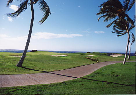 | マウナラニ2006年2月 サウスコース ラフにキクユグラスがけっこう増えた感じ。 ラフに一部バミューダもあり。 フェアウェイにも、少しキクユがあり。 2番、3番、10番あたりのコース内にかなり宅地が建ちました。 グリーンは、2004年よりは速かったのですが、やや遅めなので、押し込みないとショートするくらいでした。 |