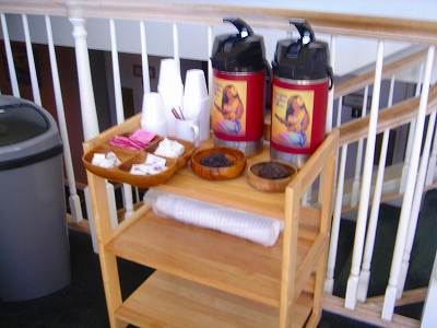 2009年1月15日ラウンド(5回目)。 5年ぶりにラウンド! 今回は、けっこう風が強かったですが、楽しめました!(^^ なんとかキャップをかぶっていられるくらいの風でした! コースコンディションもよく、コースレイアウトは、やはりけっこうおもしろいので、GOODです!(^^ ただ、けっこう雰囲気が替わったような気がします。 以前は、”ラバデザートコース”で、各ホールが溶岩エリアの中にあるコースの1つだったのですが、そのホール間の溶岩エリアにかなりの住宅が建設されていました! マウナラニ・サウスコースの2〜3番ホールあたりにも、けっこう住宅が造られましたが、それでも、周囲を見渡すことのできる視界の拾いホールがまだまだ多く残っているのに、このワイコロア・キングスコースの方が、住宅が多く建設された印象で、視界が広いところが少なくなったような・・・!??? また、そのほかの溶岩エリアとコースの境目あたりには、以前よりも、すすきのような草がたくさん生えたような・・・!? クラブハウスB1の階段の下にコーヒーのサービスあり。 ただ、朝だされるので、9時過ぎるとたぶんなくなってしまいます・・・!(^^; プレー終了後、おしぼり(ビジョビショ)のサービスあり。 コースは、フェアウェイに少しうねりが施してあるものの、概ねフラット。 各ホールが木々などでセパレートされていないので視界が広く、全体的に幅は広めで、気持ちよくプレーできます。 バンカーや池が巧みに配置されていて、レイアウトとしてはおもしろいです。