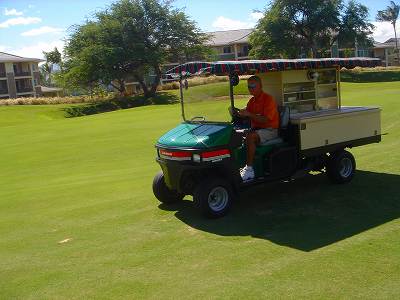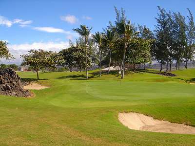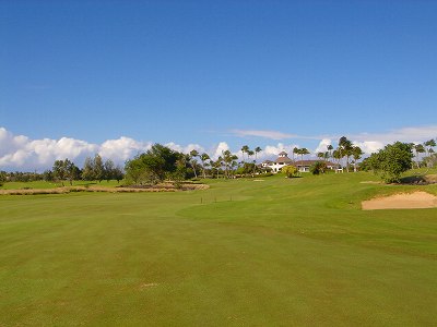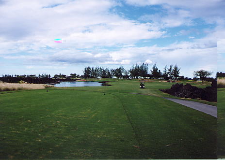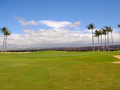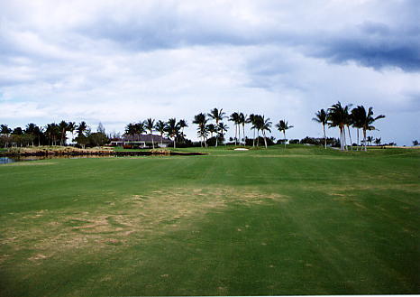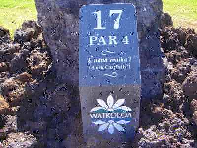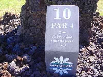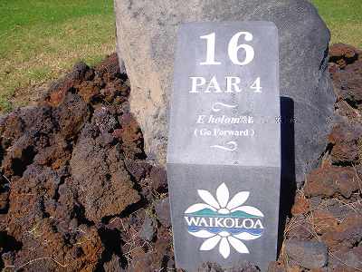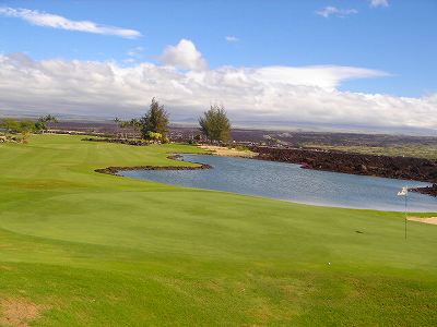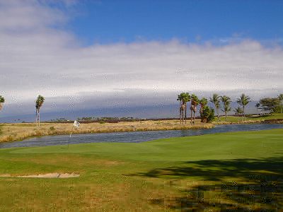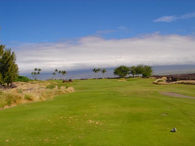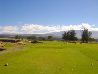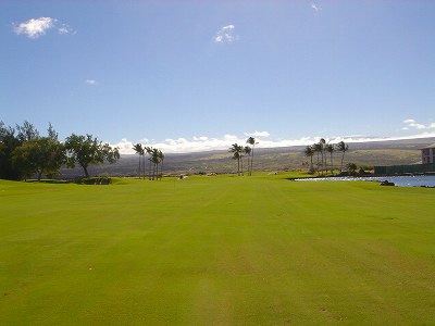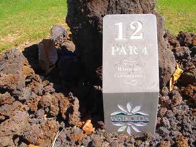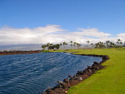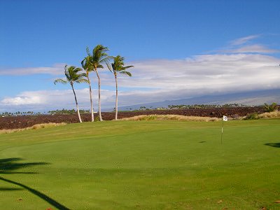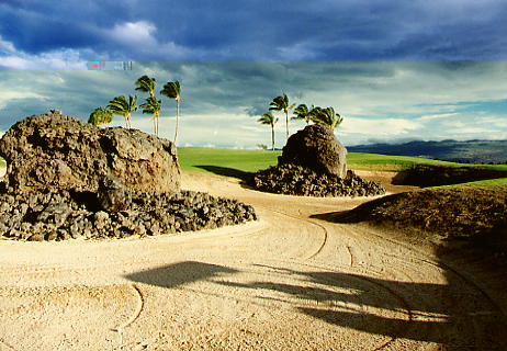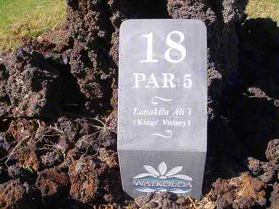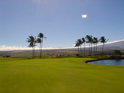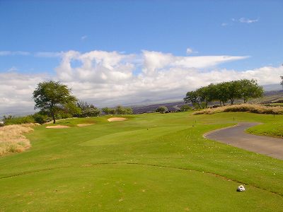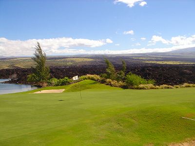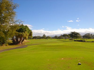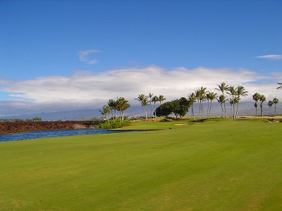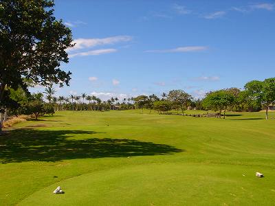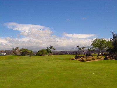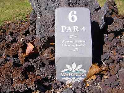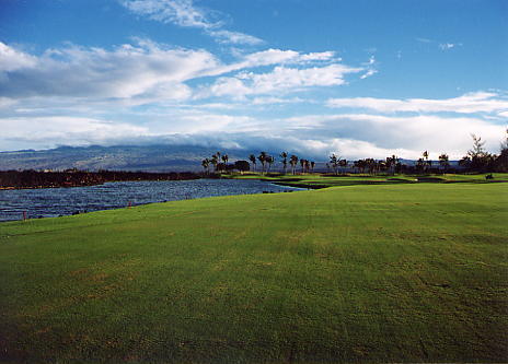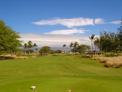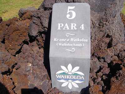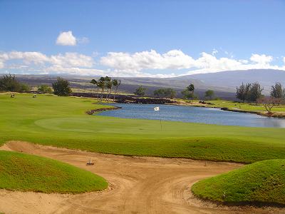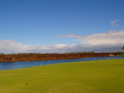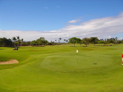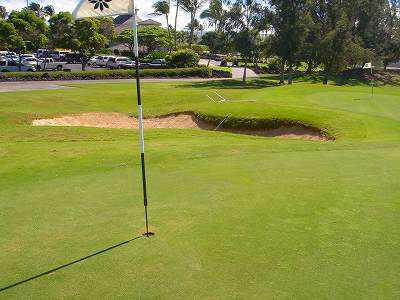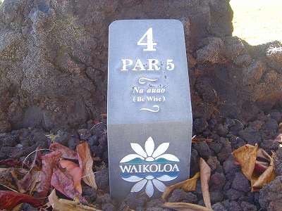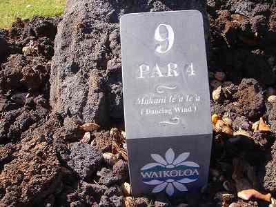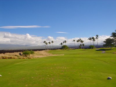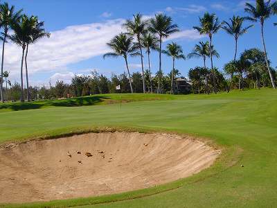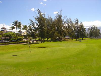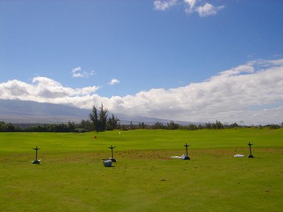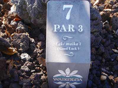 1999年12月2日ラウンド。 非常にGOODなコースでした!(^^ ![]() 以前ラウンドしたビーチコースの印象が今ひとつだったこともあり、海のそばでないし、コンディションなどもあまり期待せずに行きましたが、予想外に素晴らしかったです!(^^ コースはワイコロアビーチコースより内陸に位置しています。 マウナラニ・サウスコースなどのように、樹木が少なく、360度大パノラマ&ラバデザートコースと言えるかな!?くらいの景観です! そして、実際に、マウナラニのすぐとなりのリゾートなので、景観は似ています。 ただ内陸にあるため、海越えがない、海が近くに見えない!そう、マウナラニ・サウスコースの海に近いホールを除いたホールを集めたような雰囲気。 しかし、マウナラニ・サウスほどのラバデザートの迫力はないですが・・。 ![]() バンカーの中に巨大溶岩がそびえていたり、池も随所に配置され、ロケーションもよく、申し分のないレイアウト! ![]() コンディションも、フェアウェイ、ティーグランドもすばらしく、申し分なしでした! グリーンは、地盤が非常にやわらかく、ボールマークがつきますので、止まりやすいです。また、やや芝の葉が大き目のような気がして、刈り込みも足りないのか、少し遅めでした。 ![]() 距離は、RESORTティーからだと、6000yくらいで 長くはないので、そんなに難しくはありません。 ![]() 右の写真はフィニッシィングホール18番。 グリーンの左手前に池があります。 ![]() カートには、GPSが装着されています!初めての体験でした!^^ ティーグランドでは、そのホールのレイアウト、距離(ホールの距離と、ティーグランドからと、グリーンからの距離は図で表示)を、バンカー、池などの障害物、そこまでの距離などが案内表示されます。 またフェアウェイでは、グリーンのフロントエッジまでと、センターまでの距離を自動で割り出し表示します!すごいっ!!^^ なかなかのすぐれものです!^^ ![]() プロショップは新しくて、きれいです。 コンディション:A ティーグランド:A フェアウェイ:A グリーン:B レイアウト:A ロケーション:A プロショップ:A