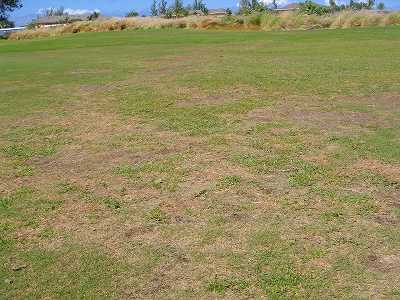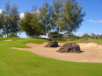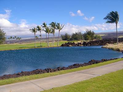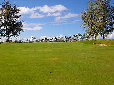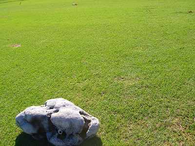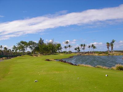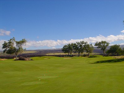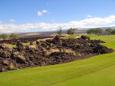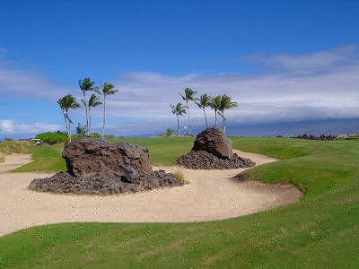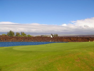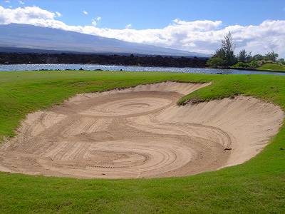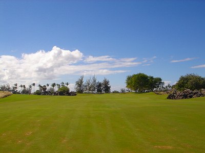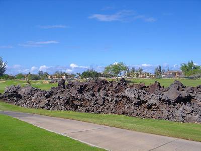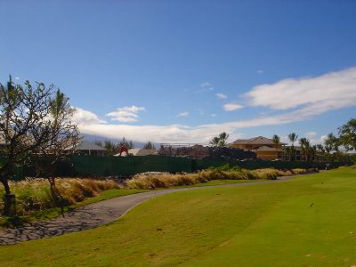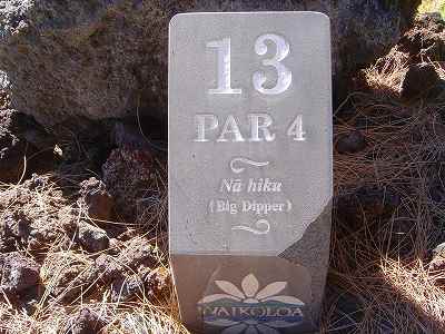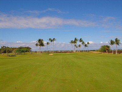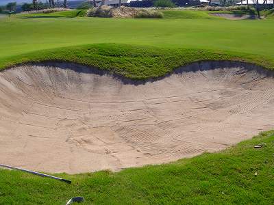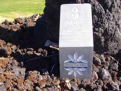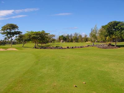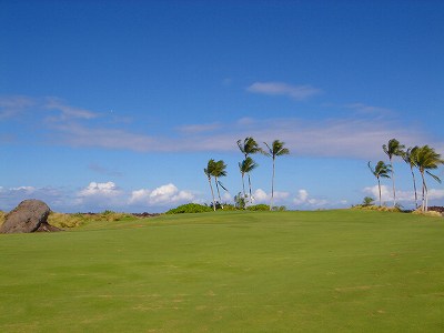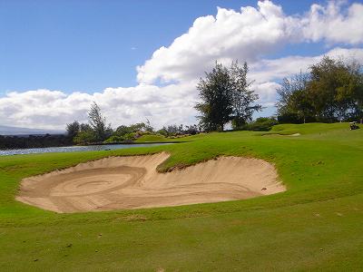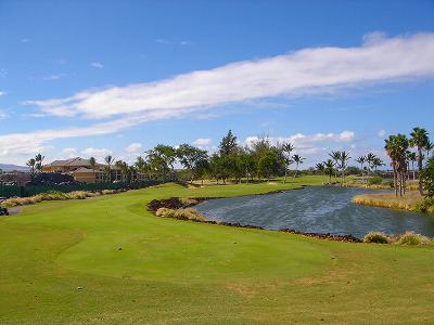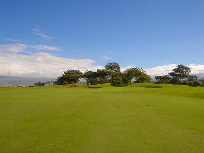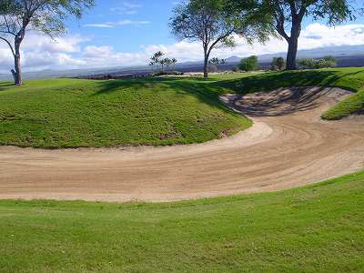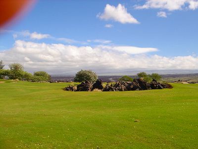 ■コース景観:B ●コースから見たまわりの景観 海は見えませんが、マウナケア、マウナロアといった山が見え、まわりの雄大な景観が見えるので、まあまあです。 2009年時点では、コース内にコンミニアム建設工事していて、ちょっと今一だった面もあり。 ●コース自体の景観 池がらみのホールがけっこうあり、きれいです! また、溶岩の中にあるラバデザートコースなのですが、ホールの周囲に草がけっこう生えてきて、ちょっと景観は低下。 ■コースコンディション:A 全体的には、まあまあなので、”A”としました。 ■フェアウェイ(バミューダグラス):Aところどころ芝の密集度が少ないところや、ハゲっぽいところがありましたが、全体的にはフカフカしているところが多く ”A”。→ ![]() 状態がいいところ。→ ![]() ちょっと芝の密集度が少なかったところ。→ ■グリーン(バミューダグラス):A〜B芝の密集度はまずまずで、”A〜B”としました。 ボールの転がりは、まあまあといったところ。 スピードは速くはなかったですが、遅くはなかったです。 ■ティーグランド(バミューダグラス):A いくつかでディボット跡が多いところがありましたが、、概ねきれいで、いい状態でした!→■ラフ(バミューダグラス):B ![]() ところどころハゲているところ、アンダーリペア(修理地)のところがありましたが、全体的には、まあまあ。 一部ですが、こんなハゲっぽいところあり。→ ■バンカー: ![]() バンカーの砂は、以前は砂利だったのですが、砂になっていました。 ややベーシュっぽい色の砂で、粒は普通。 ただ砂の量が少なく、すぐ下が泥で硬かったです!(^^; ■コースレイアウト:A 池がらみのホールがけっこうあり、景観もまずまず。 グリーン形状や、バンカーの配置など、全体的におもしろいです。 ■快適度:A 樹木が少なく、開放感のあるコースなので気持ちいいです! ただ、海が見えないのは残念。 ■コース難易度: リゾートティーからは、それほど難しくはないかな!? ただ、強風の時は、難易度がまったく変わります。 ■グリーン難易度: けっこううねりがあり、そこそこの難しさ。 ただ、スピードは速くはないので、それほど難しくはないと思います。 ■おすすめ度:A 海は見えませんが、コースコンディション、コースレイアウトはいいので、けっこうおすすめです!(^^ 総合評価:A コースレイアウトがよく、コースコンディションがいいので、けっこういいコースです!(^^ マウナケア、マウナロア山や、雄大な溶岩台地を望むことができるので、気持ちよくプレーできます! コース内には、ココナッツツリーもあり、ハワイっぽい雰囲気も味わえますが、ただ、海がまったく見えないのは、ほんとに残念なコースといえます。 |