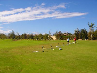 2000年8月26日にラウンド。(2回目と3回目) 昨年12月にラウンドして以来のラウンドでしたが、フェアウェイのコンディションが、前回よりも良くなかったです。前回は全面非常に良いコンディションでしたが、今回は、かなり芝が薄いところやハゲているところ、茶色いところも目立ちました!^^; 今回は、グリーンがエアレーション中で、最悪でした!^^; 一面ほとんど砂だらけのグリーン!パットするだけで、砂けむりがあがりました!^^; フェアウェイは、まあまあだとしても、このグリーンでは、はっきりいって、おもしろくありませんでした!^^; バンカーの砂は、はっきりって砂利です!直径が3〜5ミリくらいあります!クラブを傷つけたくない方は注意しましょう!^^; キングスコースもビーチコース同様、GPSシステムが撤廃されています。 ヤーデージブックは、・・・・・・・・・・・・・・・・・・・・・・・ キングスコースのレストランはクローズしています。 利用する場合はビーチコースのレストランを利用することになります。 キングコースとビーチコースのクラブハウスは、かなり離れています!(車でないと・・・) |
