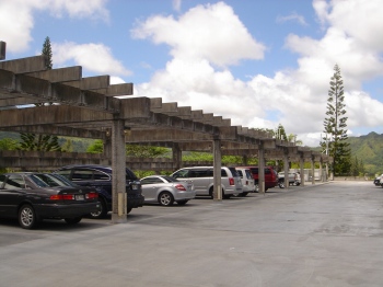 ハワイのパーキングでは、車を頭から入れるのが一般的。