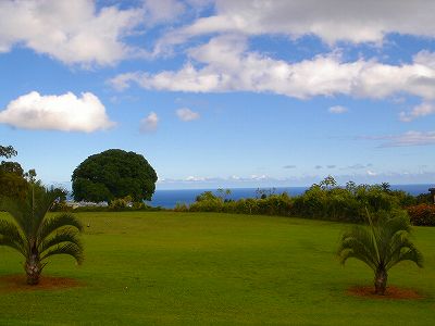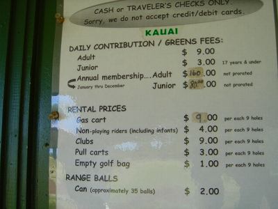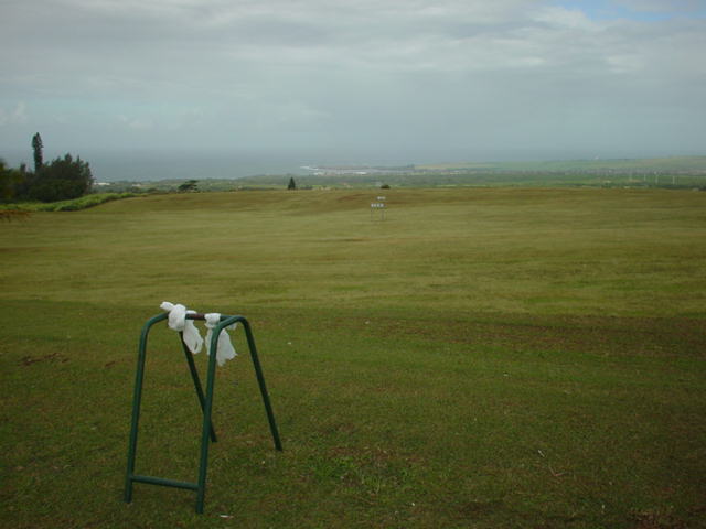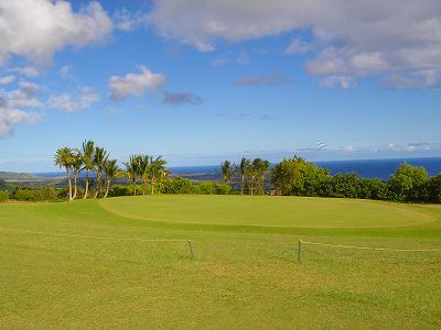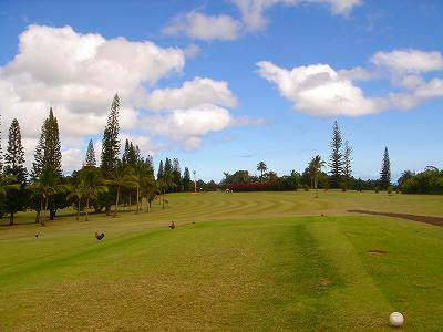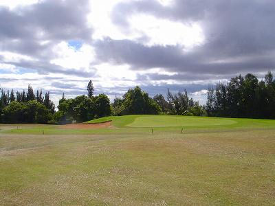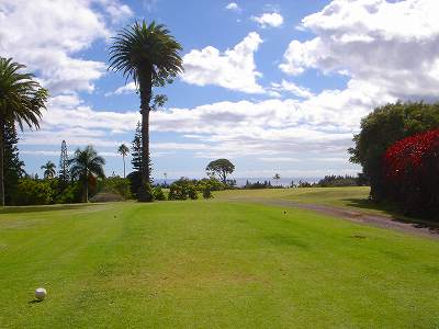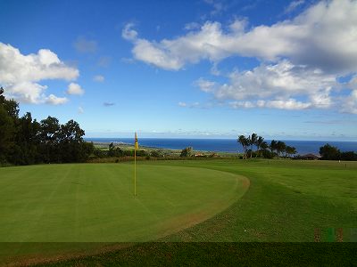 | 2011年9月12日にラウンド。 5年前、ここまで訪れながら、極度の疲労と、突発的な豪雨でやる気をなくしたためプレーできなかったので、ようやく念願?がかない、今回ラウンドしたのでした!(^^ このコースは、1928年にオープンなので、かなり古いコース。 コース設計は、トヨ・シライ。日系人なのかな??? コースは、9ホールでパー36のコース。 ただ、スコアカードには、「1st Round」と「2nd Round」で、18ホール、パー72と記載されています。 18ホールプレーする場合、同じホールを2周するわけですが、「1st Round」はホワイトティー、「2nd Round」はブルーティーからプレーできるようになっているのです。 しかし実際には、ブルーのティーマークは設置されていませんでした!(^^; プレーするまでは、コースコンディションも、コースレイアウトも、コースからの景観も、まったく期待していませんでした!(^^; しかし、実際にプレーしてみると・・・。 たしかに、コースコンディションは、予想通り(グリーン以外)でしたが、コースからの景観が予想外!! 後半のホールあたりから、はるか彼方に海が見えて、絶景が見えたのでした!(^^ 5年前のレポートにも記載していますが、ポイプから、そんなに車で上ってきた感じはしないのですが、はるか彼方に見える海が見える景色を見ると、かなり標高が高いので、ビックリします! コースレイアウト自体は、たいしたことありません! 池はなく、単調で、おもしろみはないといえます。 コースコンディションは、グリーン以外はちょっと悲惨です・・・。(^^; フェアウェイやティーグランドは、泥が露出しているところは少ないものの、全面雑草(たぶん?)で、しかも、ほとんどが枯れていて茶色くなっていました!(^^; しかも、草がベターっと寝ていて、地盤が硬いので、泥の上からショットするみたいな感じです。 そのかわりランが非常に出るので、距離はでます!(笑) ティーグランドでは、硬くてティーを刺すのが大変!!(^^; ラフとフェアウェイの区別はほとんどなく、全部同じ状態です。 ラフは、草が長いところもありますが・・・。 ただ、グリーンは、パスパラムグラスが貼ってあり、非常にきれいにメンテナンスされていました!(^^ ボールの転がりもよく、スピードも速めでした! 今回ホワイトティーからプレー。(といっても、ホワイトのティーマークしかないようでしたが・・・) ホワイトティーからのトータル距離は、スコアカードでは、2981ヤードとなっているので、やや短め。 ただ、ブルーティーが設置されていなかったことも関係しているのか?ブルーティーの距離のところに設置されているようなホールもありました。 また、ランがでて、非常に距離がでたりすることもあり、実際の各ホールの距離が長いのか?短いのか?は、よくわかならなかったのでした!(笑) コースコンディションは、けっして良くはありませんが、グリーンはまともで、予想以上に絶景の景観が見えるホールがあったので、うれしい誤算でした!(^^ クラブハウスは5年前と同じですが、プロショップはなくなっていた?ようで、レストラン&スナックショップも営業してなかったような・・・??? チェックインしてすぐにスタートだったため、今回、はっきり確認しませんでしたが、たぶんなくなっていたように思います!(^^; このコースは、なによりも、激安です!(^^ 誰でも(ジュニアを除く)グリーンフィーは、なんと$9。 乗用カートは9ホールで1台$9なので、乗用カートを2人で借りる場合は、9ホールのプレー料金は1人$13.5 です。 (乗用カートを1人で借りる場合の9ホールプレー料金は、$18 となります。) ただ、5年前より、グリーンフィー、カートフィーとも、$1 ずつ値上げされていましたが・・・。 手引きカートでもよければ、手引きカート料金が$3(9ホール) なので、9ホールのプレー料金は$12。 ロコ(地元の人)だったら、たいていは、”マイ手引きカート”を持ってて、レンタルカートは必要ないため、グリーンフィーのみの、$9でプレーできてしまいます! さらに、ジュニア(17歳以下)なら、なんと かつぎ(またはマイ手引きカート)だったら、たったの、$3(ジュニアのグリーンフィー)。 ほんとに安いです! もし、RYOがジュニア時代に、地元でこんな安くゴルフできる環境があったなら、毎日でも遊びにきてたことでしょう!(^^ それはともかく、このコースは、一般日本人旅行者にとって、ハワイで最も安い料金でプレーできる(9ホールコースですが)ゴルフ場。 いっしょにラウンドした友人は、この料金で、この景観が楽しめるコースなら、「ポイプベイゴルフコース」とのセット(ポイプでプレー後の0.5ラウンド)なら、また来てもいい!と、喜んでいました!(^^ 円高の現在のレートなら、1000円くらい。 なんたって、日本で打ちっぱなしの練習場へ行くよりも安く、9ホールラウンドできてしまうのですから・・・!(^^ まあ、フェアウェイは硬いので、そのライからのショットやアプローチは、ある意味難しいです。(^^; ただ、料