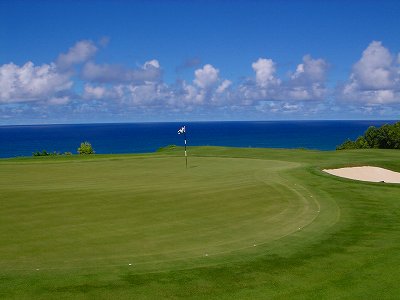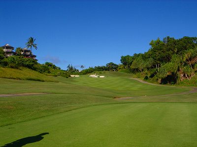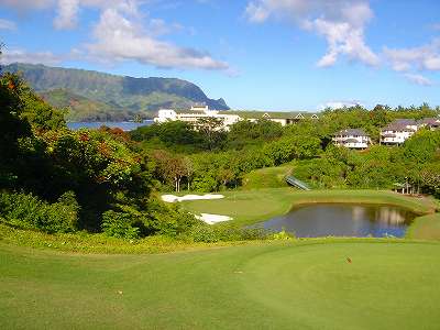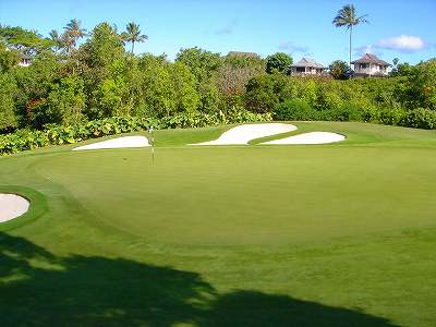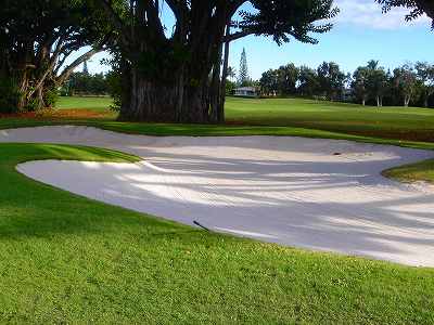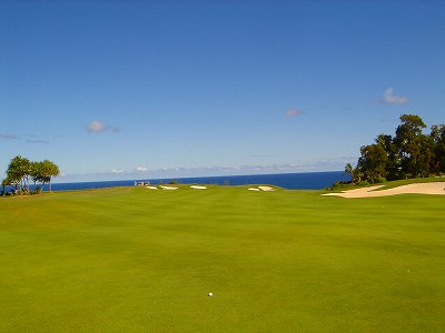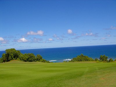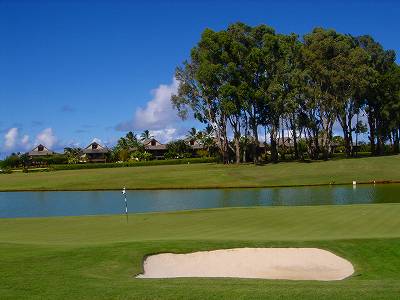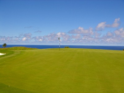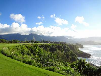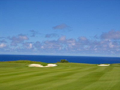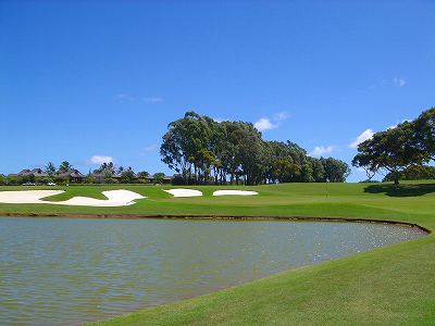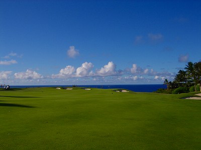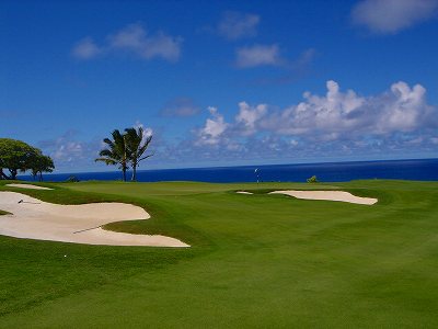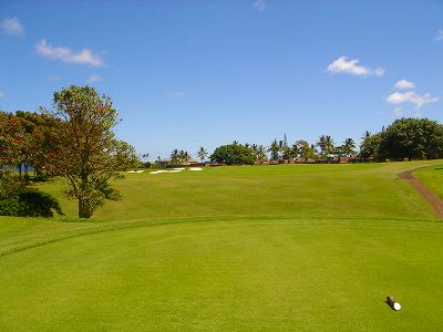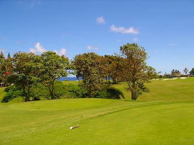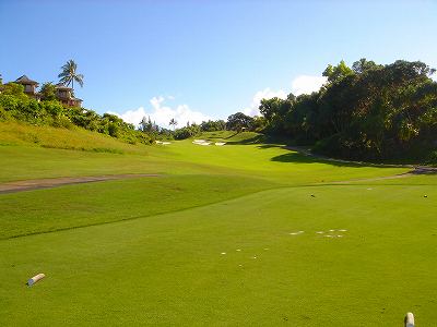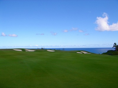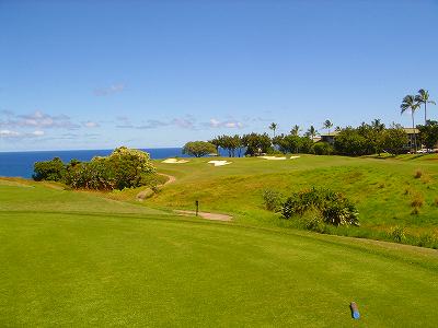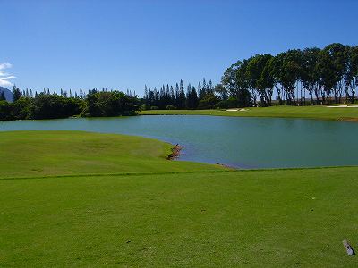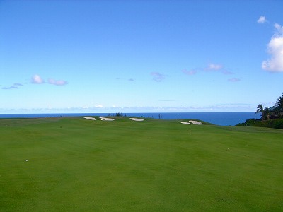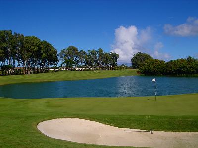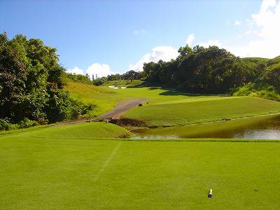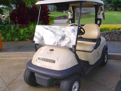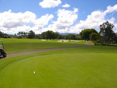 ![]() コースコンディションは最高で申し分ありません! 全面パスパラムグラスに貼り替えられ、芝が茶色くなったようなところや、ハゲているところはまったくなく、雑草はもちろんありません! さらに、ディボット跡もほとんどありませんでした! 均一にカッティングされ、パスパラムグラスの芝の状態としては完璧といってもいいでしょう! フェアウェイをはじめ、グリーン、ティーグランド、ラフといった、すべての芝の状態が最高に良くなりました! 貼り替えたばかりで、今はまだ最高の状態でしたが、今後、雨期などを経て、芝の状態が悪化しないことを祈ります! 現在の状態であれば、ハワイの中では、フアラライゴルフクラブと並び、ナンバー1といえます! ※RYOがフアラライをラウンドしたのは、もう7年前。またフアラライはバミューダグラスですが。 驚いたのは、このコースの乗用カート! GPSシステムと乗用カートが連動している、超ハイテクカートだったのでした! 急カーブや急傾斜があるカート道路、カート進入禁止エリア(グリーン手前50ヤード付近や、フェアウェイ進入禁止ホールなど)に、誤ってカートで入ってしまうと、自動的に警告アラームが鳴り、アクセルをいくらふかしても、超低速のスピードしかでないように制御されているのです! これはすごいっ!!! ■コース設計 アーノルド・パーマー、エド・セイ ■ホール数、パー 18ホール Par 72 OUT Par 36、IN Par 36 ■ティーマーク、距離、コースレート、スロープレート ティーマークは4ヶ所。 プリンス系ゴルフコースではおなじみですが、オレンジティーがレギュラーティーです。 レギュラーティーのトータル距離はやや短め。