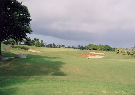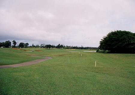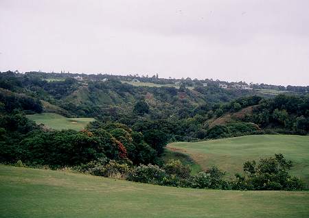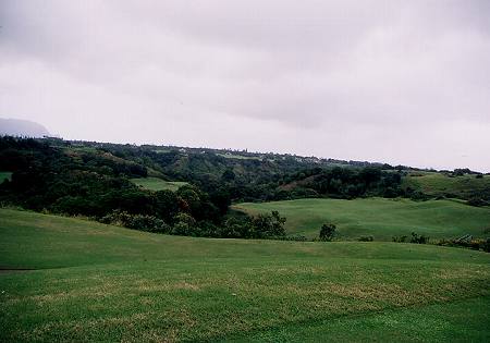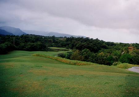 コースロケーション:A ジャングルの中のコースで、海は少ししか見えませんが、”ジュラシックパーク”にでてきそうなジャングル、天然のクリークや滝など、スケールが大きく、ある意味、すごいロケーションなので、A としました。 コースコンディション:B 全体的には、かなりの雨が降ったわりには、水はけもいいほうで、まずまず。 前回ラウンドした時よりも、かなりよかったです。 ![]() フェアウェイ(バミューダグラス):B かなり激しい雨が降ったわりには、コース全体の水はけは、まずまずといえます。 しかし、それでも、ほとんどの場所が、かなり ”wetty(カジュアルウォーターか、カジュアルウォーターギリギリくらい)”でした。 芝の状態としては、やや芝が薄いところが一部あったものの、全体的には、まずまずでした。→ グリーン(バミューダグラス):B まあまあ。けっこう速いグリーンでした。 (前回はエアレーションで砂入りだった!^^;) ティーグラウンド(バミューダグラス):B まあまあ。 ![]() ラフ(モンドグラスなど):B ラフはバミューダグラスではなく、太い草(モンドグラス・・メンテナンススタッフに聞いたら、そう言っていました。)。 野芝よりも太く強い草です!これって、芝の種類?かは不明! とても、”芝”とは思えませんが・・・。(^^; ![]() ラフには、ほかに、雑草?みたいな草のところもあります。→ これは、どうみても、”芝”ではないでしょう!(^^; コースレイアウト:特A 非常に難しいですが、ジャングル、谷越え、クリークやバンカーも、よく効いている、よく考えられたコースレイアウトです。 中上級者であれば、やりがいのある、やりごたえのある、ぜひとも攻略したいと思わせるような、おもしろいレイアウトといえるでしょう。 快適度:B ジャングルや、天然のクリークや滝などの、スケールの大きな景観は楽しめます。 しかし、コースが難しく、好スコアは望めないため、”快適”とまではいえないかな?といった感じ。 また、雨が多いエリアで、コースコンディションが、かなり ”wetty” であり、シューズ、パンツ(ズボン)などは、ものすごく汚れます!(^^ 難易度:特A ホワイトティーからでも、距離がたっぷいあり、非常に難しいと思います。 さらに後方のブルー、ブラックティーからは、さらに難しいことでしょう! フルバックのプリンスティー(ブラック)からのスロープレートは、145。 上級者では、病み付きになってしまうかもしれません!?(^^; グリーン難易度:B スピードは、それほど速くないですが、アンジュレーションは、けっこうあるので、やさしくはありません。 おすすめ度:A とにかく、スケールが大きいものすごいコースなので、ハワイのゴルフコースの中で、1度はプレーしてもらいたいコースの1つです。 特に上級者には、超おすすめ! しかし、初心者、初級者には、まったくおすすめできません!(^^; 総合評価:A 前回は、グリ−ンがエアレーション時期で砂入り、コンディションも今一(マカイコースの方がよかった)だったことと、あまりにもコースに叩きのめされてしまったこともあり、ランクをBとしていましたが、今回はコンディションが前回よりもよく、2回目のラウンドということもあり、やればやるほど、挑戦意欲をかきたてられることを実感!(^^ 是非、またチャレンジしに来たいので、Aにランクアップしました!(^^ |
