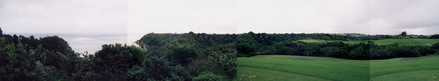 ティーグランドが、少し小高いところにあり、けっこうまわりが見渡せます。 左奥には、海も見えて、けっこういい景観! ![]() ![]() シグネチャーホールの1つといってもいいでしょう! 7番ホールは、谷(ジャングル)越えのパー3。 ティーグランドの前方から左サイドは、全部も谷(ジャングル)なので、グリーンが小さく感じます! ![]() グリーンの左に1つ、右に2つ、奥に1つバンカーがあります。 ←谷(ジャングル)の先の、グリーン右手前の花道から見たグリーン。 海が見えて、いい景観です。 写真では、海が近く見えますが、実際には近くはないです。