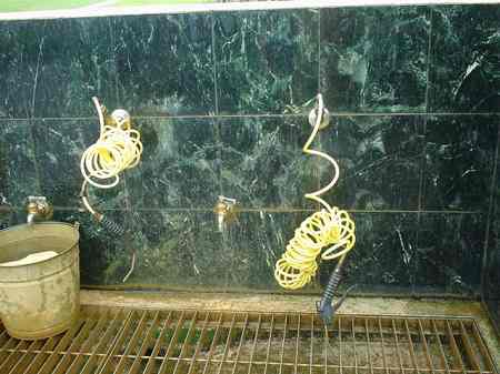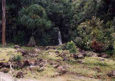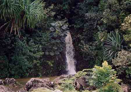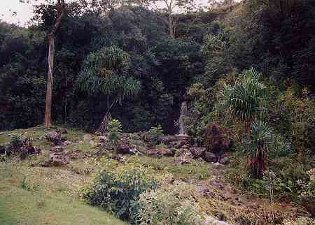13番ホール。 このホールもシグネチャーホールの1つといってもいいでしょう! 右へ直角に近くドッグレッグしているパー4。 このホールがまた狭い!! ホール全体がジャングルに囲まれていて、途中でフェアウェイをクリークが斜めに横切っている難ホール。 ホワイトティーから、右サイドは184ヤード。左奥方向は、229ヤードを越えるとクリーク。 ドライバーではとても打てません! フェアウェイは、ダウンヒルになっているので、やや左方向へ200ヤードくらい打っていくのがベストですが、そこから180ヤード以上のセカンドショットが残ってしまうので、どのように攻めるか、戦略が求められます。 アイアンでティーショットをすると、セカンド地点では、200y以上残ってしまいます!(^^; ![]() ←横切っているクリークを左サイド手前から見たところ。 グリーンは、この写真の右奥。 このクリークは、この先、フェアウェイの右からグリーン奥までつながっていて、グリーン手前で蛇行してくいこんでいるので、グリーンがまた狭く見えるのでした!(^^; グリーン前の花道は、左の数ヤードだけ。そのすぐ左はブッシュです!(^^; セカンドショット地点より先は、やや打ち上げです。 ![]() ←グリーンのすぐ右と奥はクリークです。 RYOは、アイアンでのティーショットは、いいポジションに運んだものの、クリークの先にレイアップ。 なんとか3オンして、ボギーで満足のRYOでした!(^^ ![]() 実は、このクリークは、この滝からつながっているのでした! グリーンのすぐ奥の滝!! いやー!なんともすごいホールだなぁー!(^^ 日本では、まず味わうことのできないホールといえるでしょう!^^ ![]() ![]() それほど大きな滝ではありませんが、 人工的な滝でなく、”自然の滝” なので、なんか、”ほんとに大自然の中でゴルフしているんだ〜!”という思いにかられるRYOでした!(^^