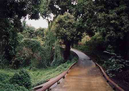 ![]() このホールもシグネチャーホールの1つ。 S字形をしていて、フェアウェイが谷(ジャングル)で2つに分断されているパー5。 ティーショットとセカンドショット地点から、2回の谷越えとなります。 ←ホワイトティーからのティーボックスから見たところ。 写真の右が1つ目のフェアウェイで、左奥に見えるのが2つ目のフェアウェイ。グリーンがその先に見えます。 ティーショットは、1つ目の谷越え(写真の右方向)で、やや打ち下ろし。 ホワイトティーからで、谷越えは144ヤード。 奥は、250ヤード以上打つと、奥の谷まで突き抜けます。 ![]() ←ホワイトティーからのティーボックスから望遠で撮影。 右サイドは広いですが、右へ打つと、セカンドでの谷越えが不可能になるので、狙いは左サイド。 ドロー気味でセンター方向に打てれば、スロープで左サイドのポジションになります。 ところが、ちょっと力んでしまい、ティーショットで谷底へ!(^^; しかし、打ち直しは快心のショット!ベストポジションへ・・。(^^ ”最初からこうやって打てよなぁー!ってんだよー!” (^^; 1打目は忘れることにして、気分新たにセカンド(実際には4打目)。 前回、レイアップしてからのショットで3発くらい谷へ落とした記憶が鮮明によみがえってきました!(^^; ”今度はリベンジしてやるー!” しかし、これがメンタル的に悪く、ダフッてボールは谷底へ・・・!(^^;(ライはWettyでダウンヒルだったんだもーん!・・・いいわけ!!^^;) ←2つ目の谷の手前から見たところ。左右ともジャングルで、けっこう狭いです。 2つ目の谷の先からは、右へドッグレッグ。 右サイドへと、かなりスロープがきつく、右サイドへボールが転がりやすくなっています。右サイドからのサードショットは、ジャングル(谷)越えとなります。 さて、RYOの、1つ目のジャングル(谷)手前からの打ち直しのショット。今度はジャングル(谷)はクリアしたものの、今度は右のジャングルへ・・!(^^; このコースは、谷やジャングルはOBではなくハザード扱いなので、今度は1つ目の谷の向こうの、延長線後方のラフにドロップ。 グリーンは右奥にあるので、右サイドから打つと、またグリーン手前のジャングル(谷)越えでないの! また、このラフは、1センチくらいの太さの、わけわからん芝?(草)に、完全にクラブがくわれてしまい、吸いこまれるように、またまた谷底へ・・・!(^^;えーーーん!ちっきしょうーーー! このホールだけで4個も谷へ・・・! なんと、”12打”も叩いてまったRYOでした!!(^^; ![]() 15番ホールと、16番ホールの間のインターバル。 カートで、ジャングルの合間を抜けていく途中に、こんな川が流れていました! ![]() まさに、ジャングルの中!っていう感じ!(^^; ![]() ジュラシックパークのロケ地である、カウアイ島ならでは!といった、うっそうとしたジャングルの間のに川。 ”ヴェロキ・ラプトル(恐竜)”でも、ほんとにでてきそうな感じさえします!!(^^;