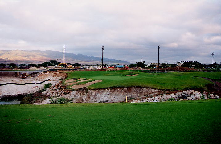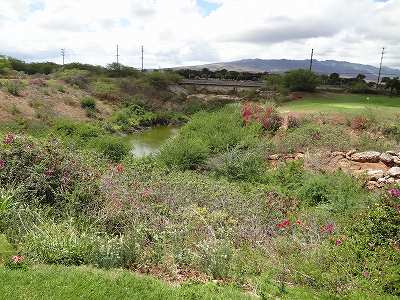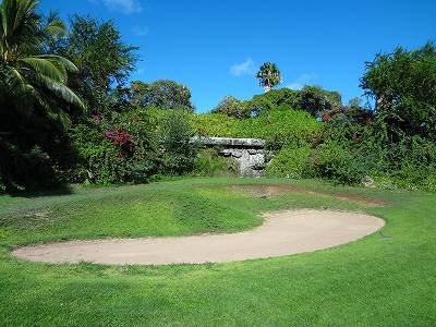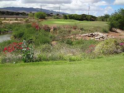 2000年は、グリーン奥に大きな滝があり、グリーン右をクリークとなって池まで流れている美しいホールだったのに、2005年プレー時には滝は止まっていて、2012年は滝があったところは、完全な廃墟になってしまっていました。