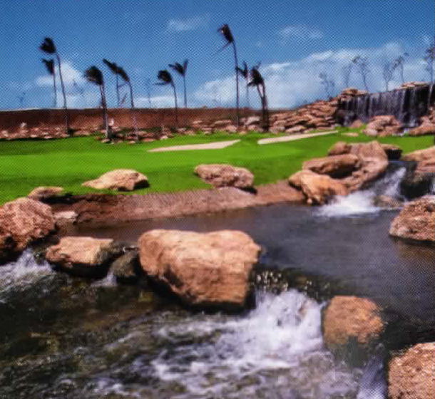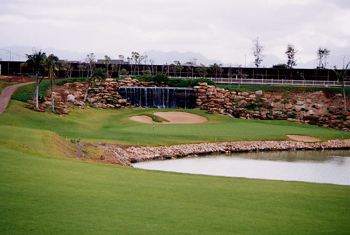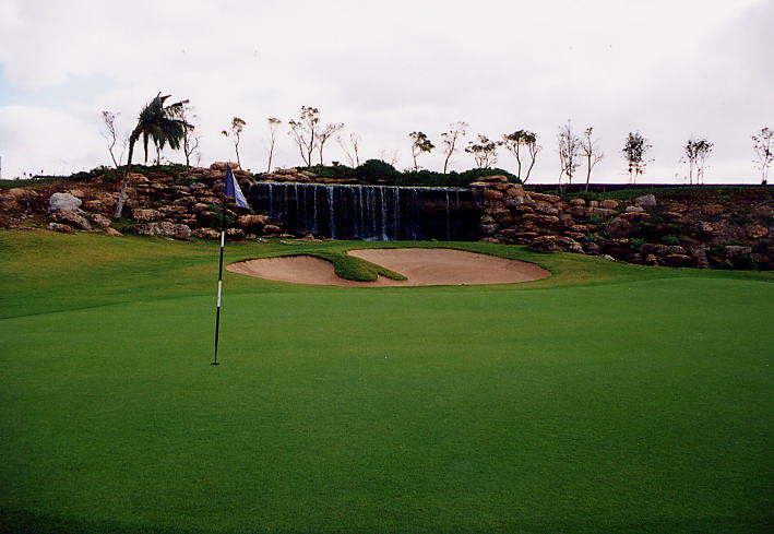 2000年は、グリーン奥に大きな滝があり、グリーン右からクリークとなって、池まで流れこんでいました。