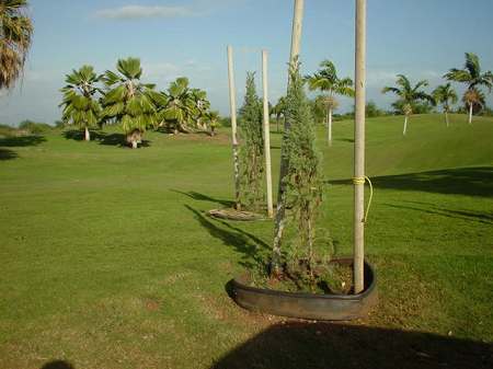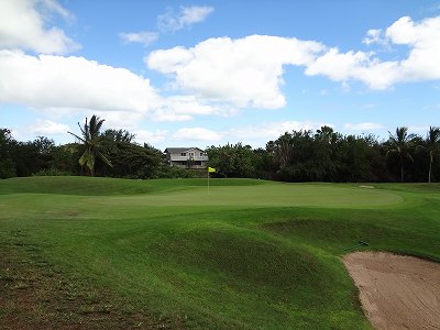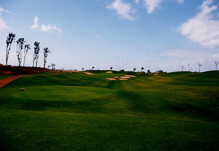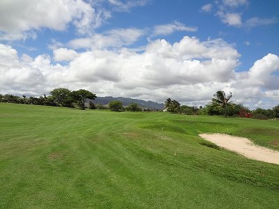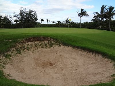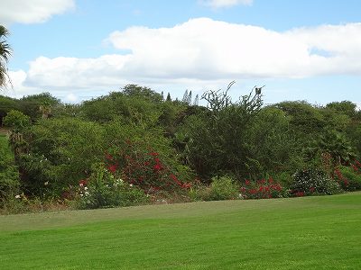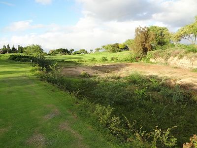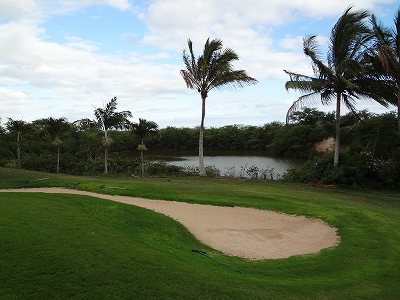 グリーン奥は、ジャングルのように樹木が生い茂り、特に写真右の”シュロの木?”のような巨大な木の下部が茶色く枯れたような色で、ダラーっとしていて、景観を汚くしているといえます。