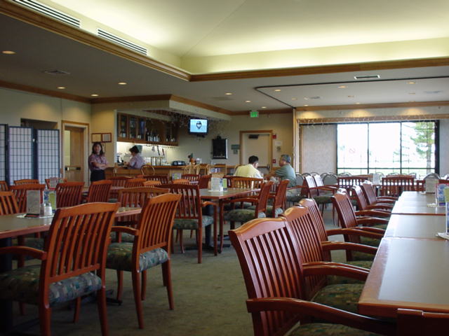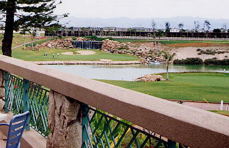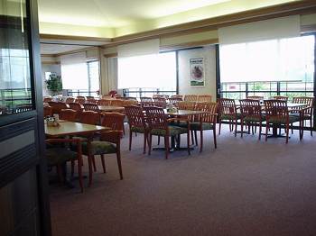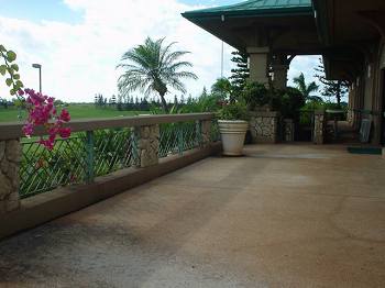 クラブハウスのテラスからは、10番、18番グリーンと池が見え、いい景観!(^^