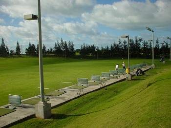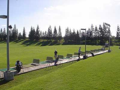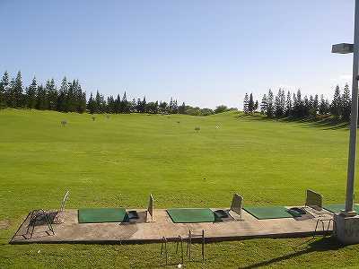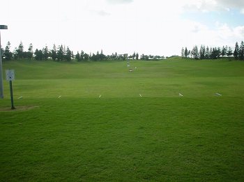 ドライビングレンジは、広く、天然芝から打つことができます。