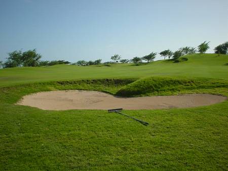 グリーン左手前の3つのバンカーが、すでに消滅。