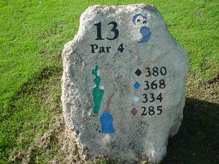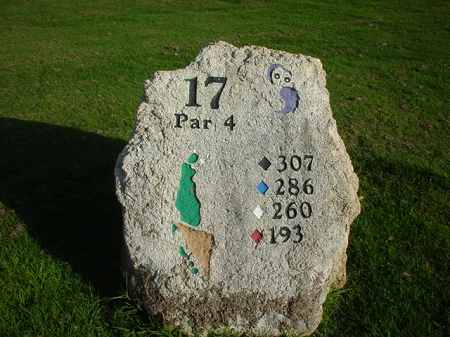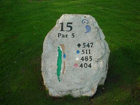 ※2000年のヤーデージブックには、まん前が池で、右奥は石のハザードのイラストになっている。