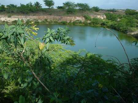 池の周囲はブッシュの草でボウボウで、池の縁の白色の岸壁は白くなくなっただけでなく草に覆われ、池自体も見えづらくなってしまっています。