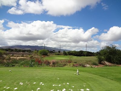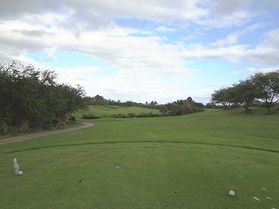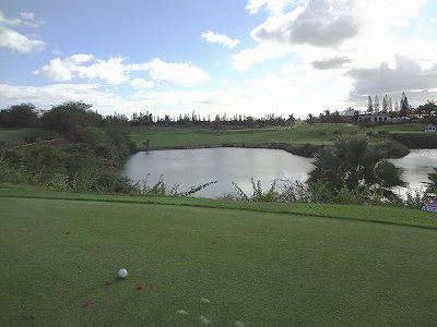 ティーボックスとグリーンの間には池はなく、ただの谷越えでした。
