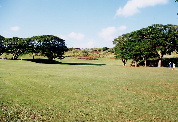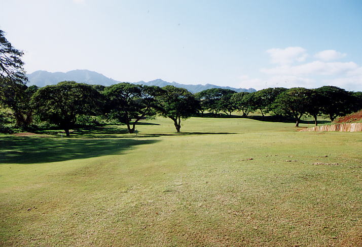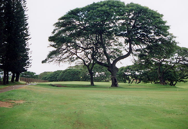 コース内には、パームツリー、パインツリー、モンキーポッドなどの木があり、1、8、9番あたりは、パームツリーがあるため、ハワイらしい雰囲気がちょっとだけあります。