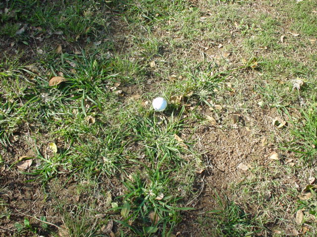 フェアウェイ(ラフ)は、芝が薄いところが多く、雑草だらけ。