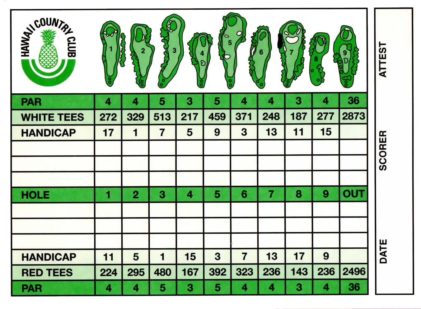 したがって、スコアカードにも、ホワイトとレッドの2ヶ所の距離しか、記載されていません。