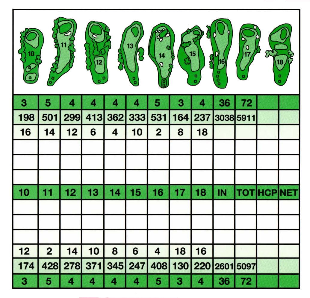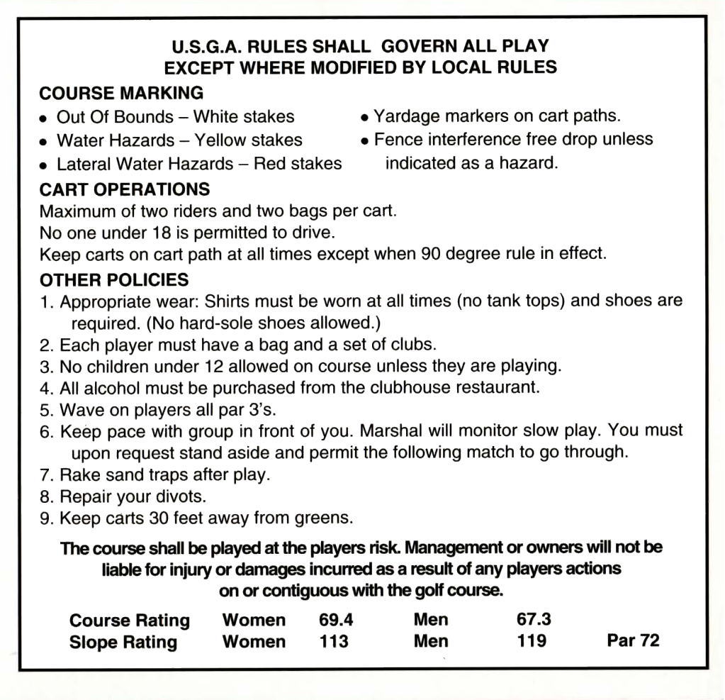 ティーマークは、ホワイト(5911ヤード)と、レッド(5097ヤード)の2ヶ所。