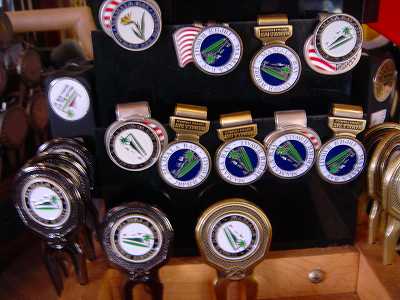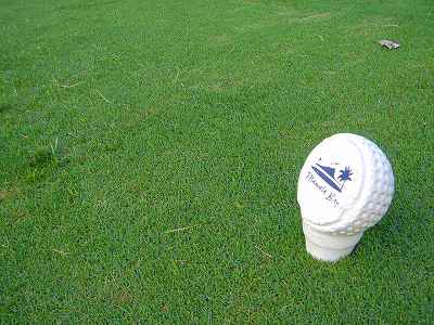 巨大なゴルフボールの半球状のヤツに、ロゴマークがついています。