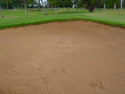 芝の密集度はまずまずで、バミューダグラスのグリーンとしては、ボールの転がりがよく、芝の状態は悪くはなかったので、”B”としたいところ。