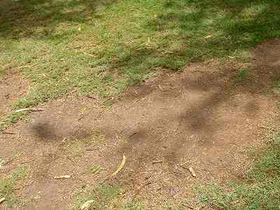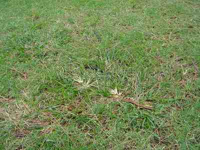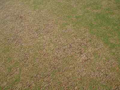 芝が少し茶色くなっていて、やや隙間があるところ。→