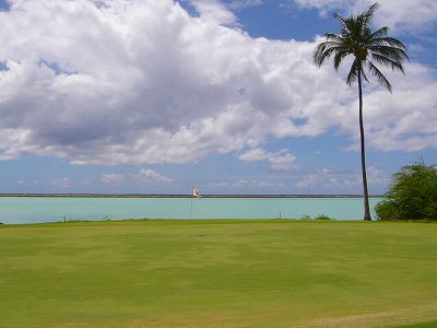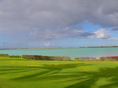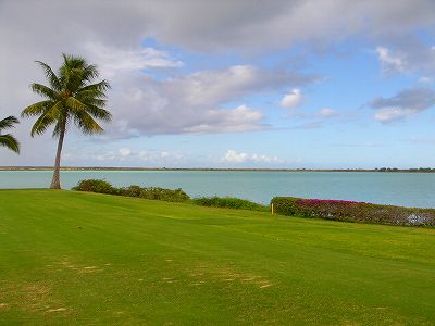 しかし、白濁系の水色の海は、なんともいえない色で、多くのホールから海が見え、日本では絶対味わうことのできない景観のコース。