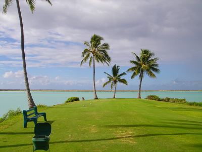 ”ママラベイ”という、白濁系水色のなんともいえない色をした海をながめながらのプレーは、日本では絶対に味わうことができません!