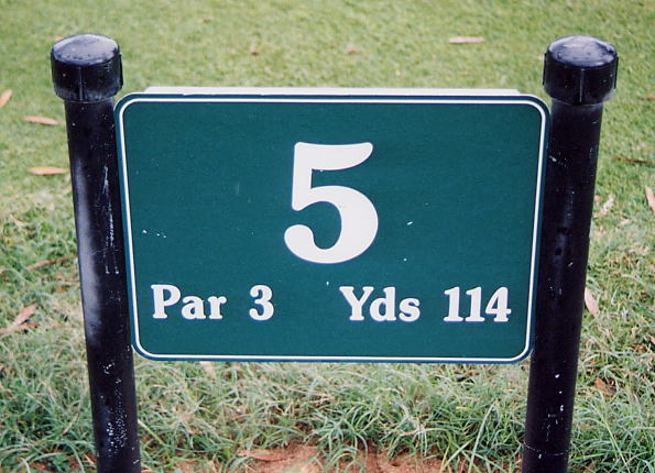 1〜3番ホールまでは、本来の1〜3番であったと思われますが、4番ホール以降は、エキストラホールを使用していたり、プレー順序も変更されていた(4番ホールからは、いくつかのホールで、ティーグランドにあるホールプレート(距離表示板)のホール番号には、上から別の番号を書いた板をはりつけられていた。)ようだったので、どのホールが、本来のどのホール番号なのか、全くよくわかりませんでした!(^^;