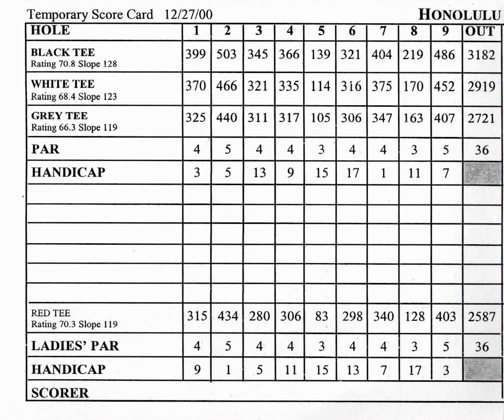 また、今回使用したスコアカードには、”Temporary Score Card” と印刷されていたので、一時的な、コピーで作成したモノクロ状のもの。