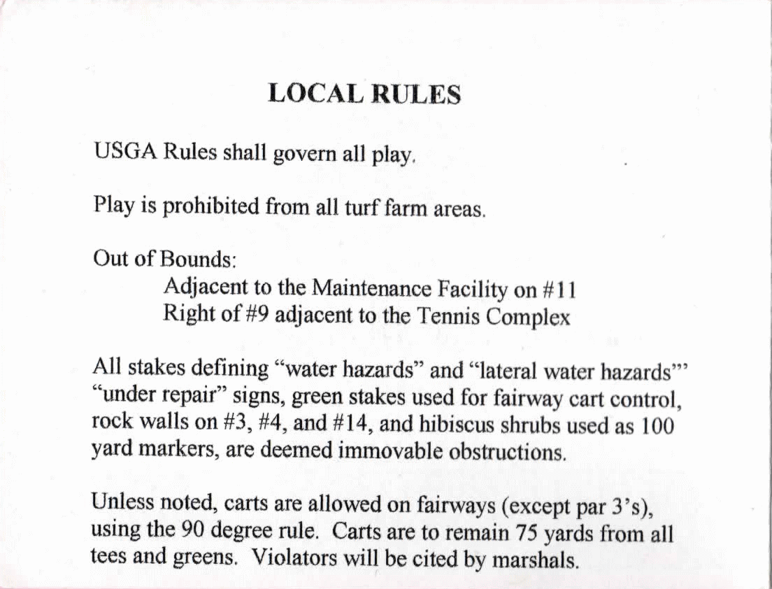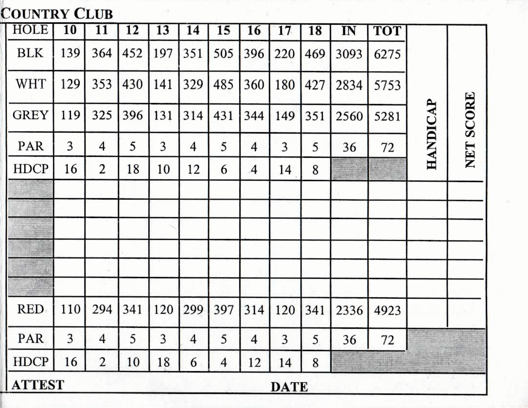 スコアカードでは、ティーマークは、BLACK:6275ヤード、WHIITE:5753ヤード、GLAY:5258ヤード、RED:4923ヤード の4ヶ所。(今回はエキストラホール使用のため、トータル距離は暫定的のもの)