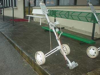 乗用カートが使用できなかったため、今回、プルカート(手引きカート)を使用。