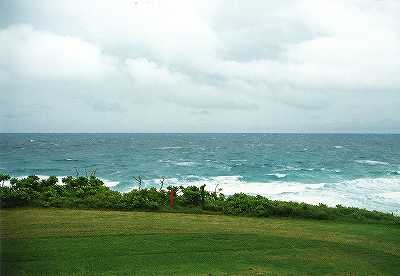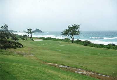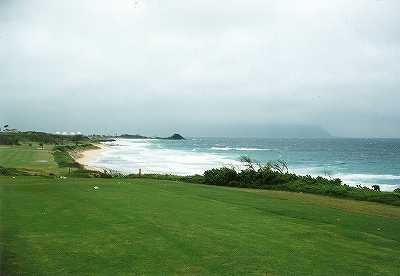 今回、フロントナインをプレーしたのは初めてでしたが、7番のティーグランドで海が見えたのにはビックリ!