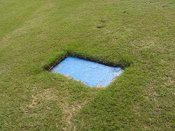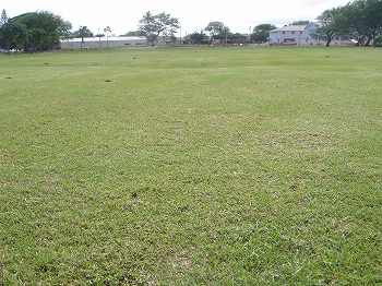 ところどころ、きれいな状態の”A”のところもありましたが、芝が薄いところや、雑草のような太い芝がかなり混在しているところ、また、ベアーグランドのところもあり、全体的には、”B〜C”といったところ。